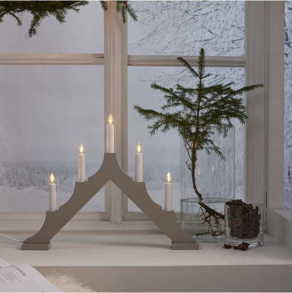 Beige adventsljusstake tillverkad i trä. Klassiskt formad ljusstake med modern touch. Fin ljusbild som skapar den perfekta julstämningen i ditt fönster. Denna produkt har FSC®-märkning.
