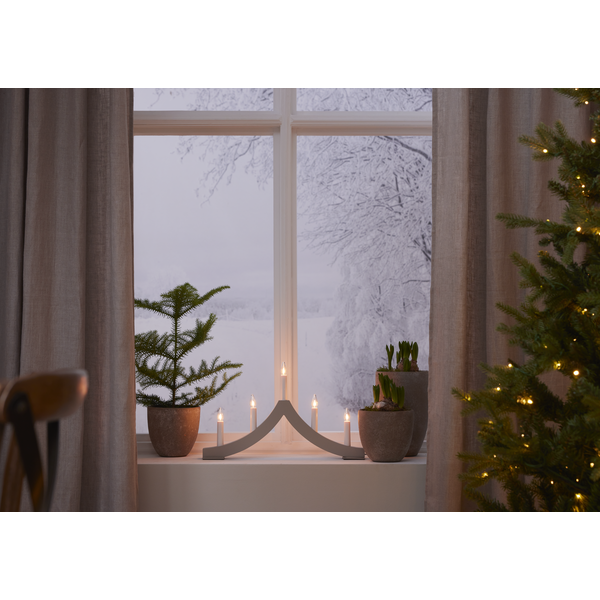 Pagod är en adventsljusstake tillverkad i trä och målad i elephant färg. Den unika och eleganta formen är skapad av vår designer Charlotte Falck. Med sina 5 ljuskällor lyser ljusstaken stämningsfullt och skapar en fantastik julstämning i hemmet eller i offentliga miljö.