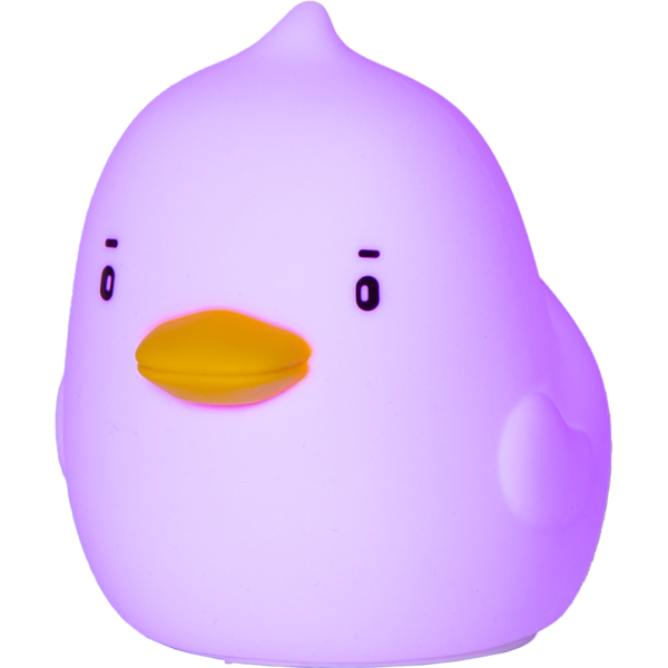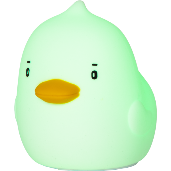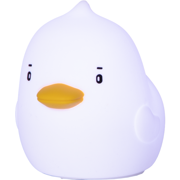 Duck Night Light, drivs av ett uppladdningsbart batteri. Laddkabel, 80cm, med USB C plugg medföljer. Laddas i 2,5-3 h, lyser därefter i ca 9-10 timmar. Sätt på, stäng av eller byt färg med hjälp av en lätt klapp! Stängs av automatiskt efter 3timmar