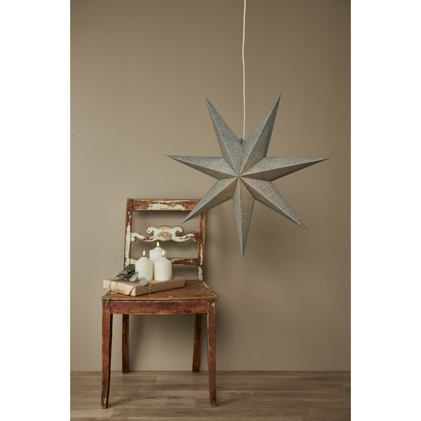 Pappersstjärna klädd med tyg för den perfekta naturkänslan. Modern adventsstjärna att dekorera ett fönster eller luta den mot en vägg. Dekorera till advent och det ger en härlig julstämning. Köp till sladdställ och ljuskälla för att få ljus i stjärnan.