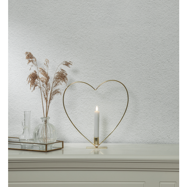 Ljusstake stående Hjärta ink. LED ljus Mässing