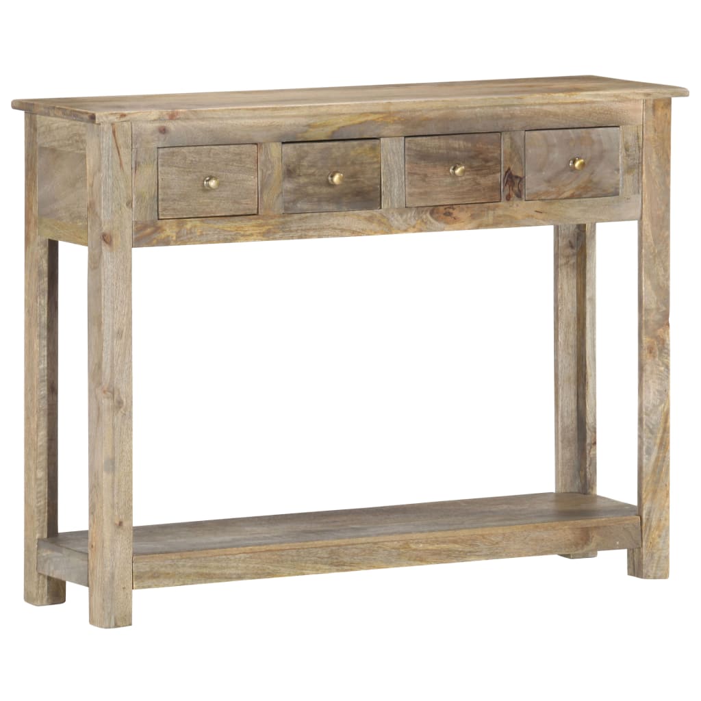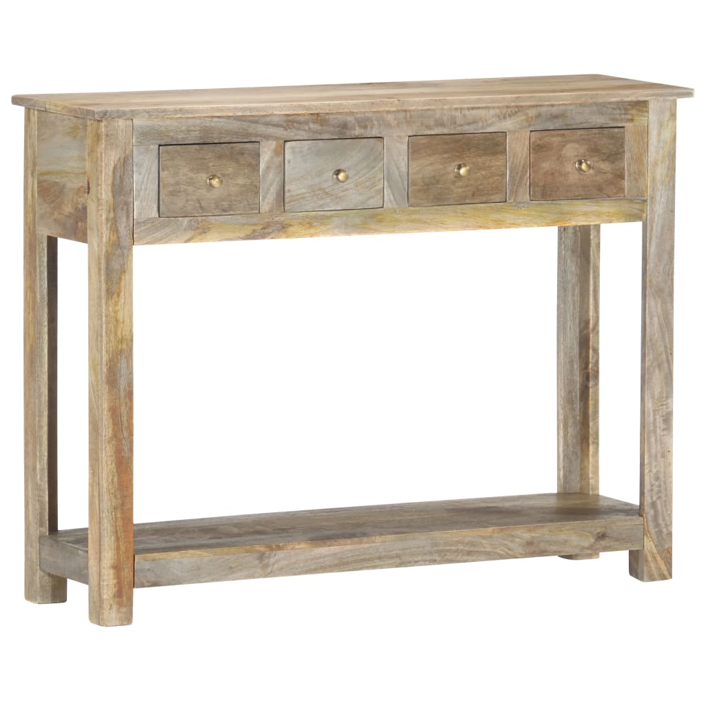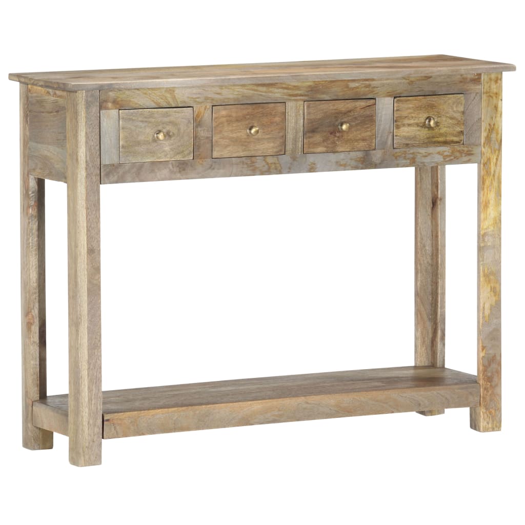 Sidobordet är tillverkat i massivt mangoträ som har polerats, målats och lackerats men har ändå kvar sin naturliga färg och ett grovt utseende. Detta bord är helt handgjort och de vackra träådringarna gör varje möbel unik och något annorlunda från de andra. Detta sidobord har en robust och stabil yta där du kan ställa fruktkorgar, vaser eller andra dekorativa föremål. Konsolbordet har fyra lådor och en hylla med gott om utrymme för att hålla dina tidskrifter, böcker och andra små föremål inom räckhåll. Monteringen är enkel.
