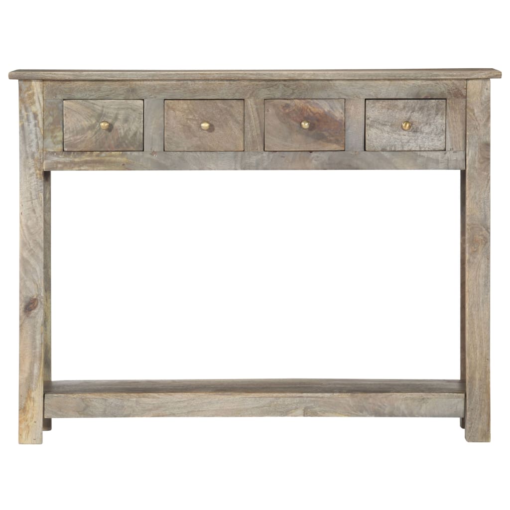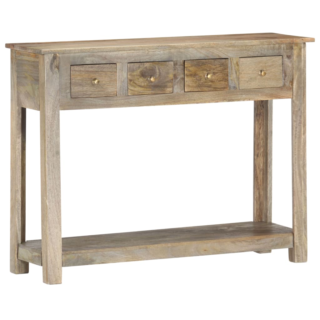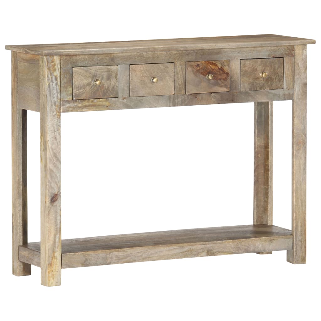 Sidobordet är tillverkat i massivt mangoträ som har polerats, målats och lackerats men har ändå kvar sin naturliga färg och ett grovt utseende. Detta bord är helt handgjort och de vackra träådringarna gör varje möbel unik och något annorlunda från de andra. Detta sidobord har en robust och stabil yta där du kan ställa fruktkorgar, vaser eller andra dekorativa föremål. Konsolbordet har fyra lådor och en hylla med gott om utrymme för att hålla dina tidskrifter, böcker och andra små föremål inom räckhåll. Monteringen är enkel.