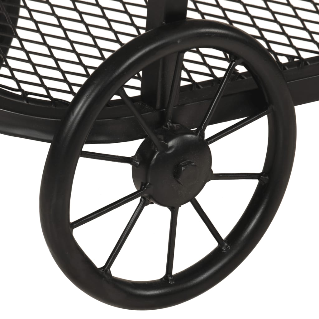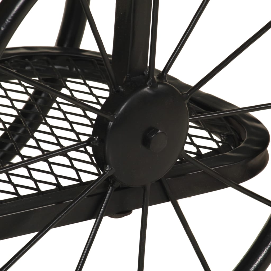 - Stabil stomme: Den pulverlackerade järnstommen är prydd med dekorativa hjul och bidrar till hallbordets hållbarhet såväl som dess industriella utseende.