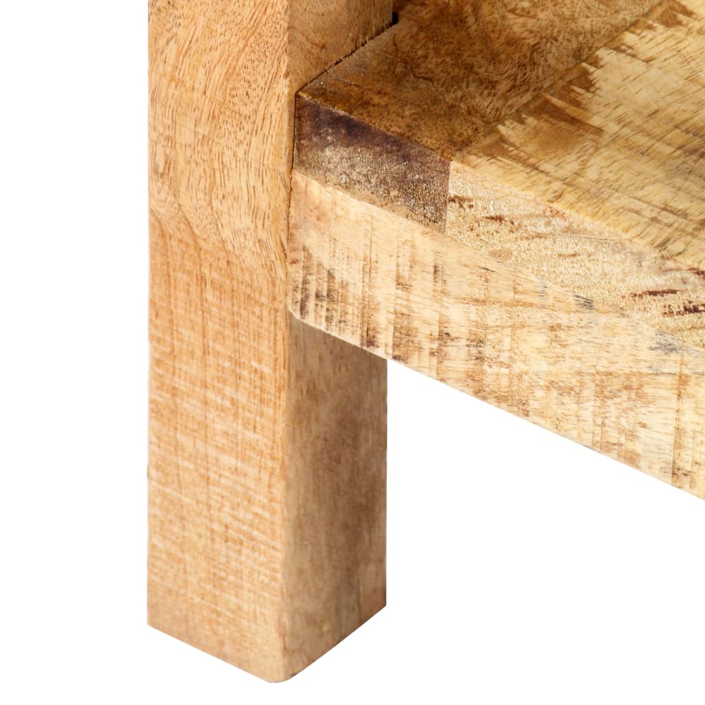 Bordet kommer att skapa en tidlös känsla i ditt hem. Det är tillverkat av massivt mangoträ vilket är ett lövvirke med täta korn. Grovt mangoträd har både styrkan att bära tung last och stå emot slitage. Följaktligen är detta vackert utformade sidobord extremt stabilt, hållbart och iögonfallande. Den utsökta hantverksskickligheten och de graciösa träkornen gör varje möbel distinkt och något annorlunda från varandra. Varje steg i processen utförs med största noggrannhet, vare sig det gäller polering eller lackering. Avlastningsbordet har 2 lådor och 1 hylla med gott om plats för dina olika föremål.