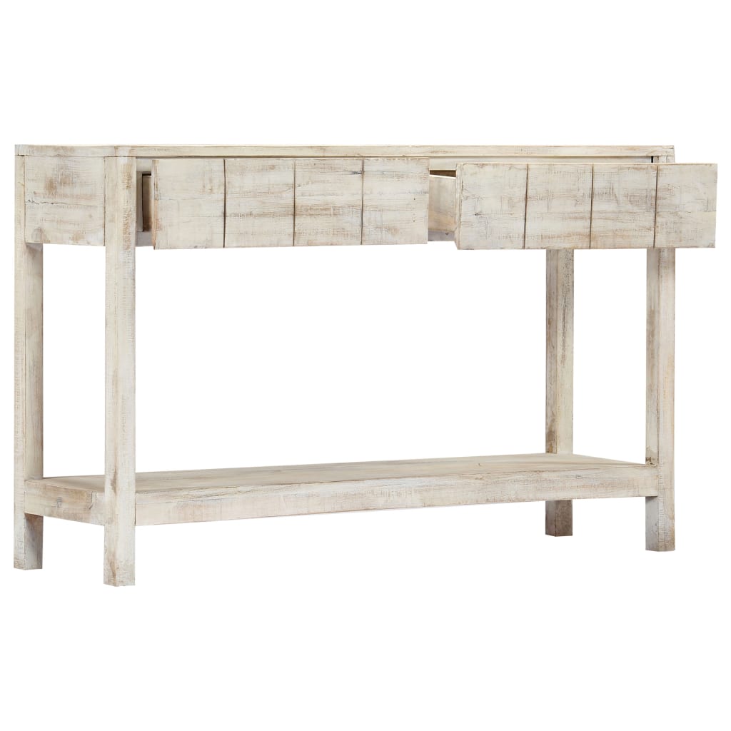 Detta bord är tillverkat av massivt mangoträ som har fått en vacker yta genom polering, målning och lackering för att ge en raffinerad look. Den utsökta hantverksskickligheten och de raffinerade träkornen gör varje möbel unik och något annorlunda från varandra. Hallbordet har 2 lådor och 1 hylla med gott om utrymme för att förvara dina personliga tillhörigheter.