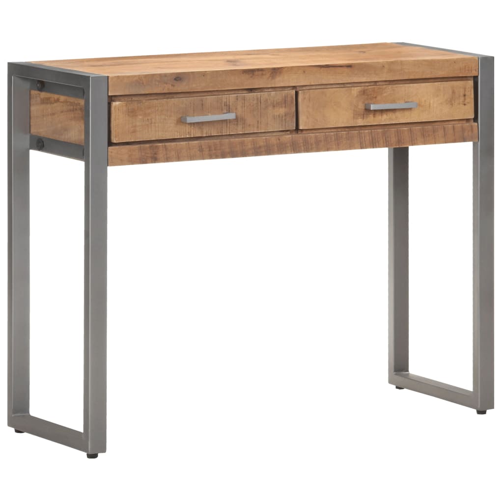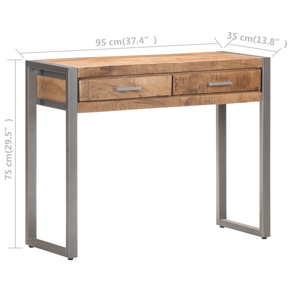 Hallbordet är handgjort av grovt mangoträ, ett tropiskt träslag som är starkt nog att bära vikten. Det är även mycket tåligt, vilket gör det stabilt och hållbart. Även järnramen gör det stabilt. De 2 lådorna ger dig plats att förvara dina saker inom räckhåll.