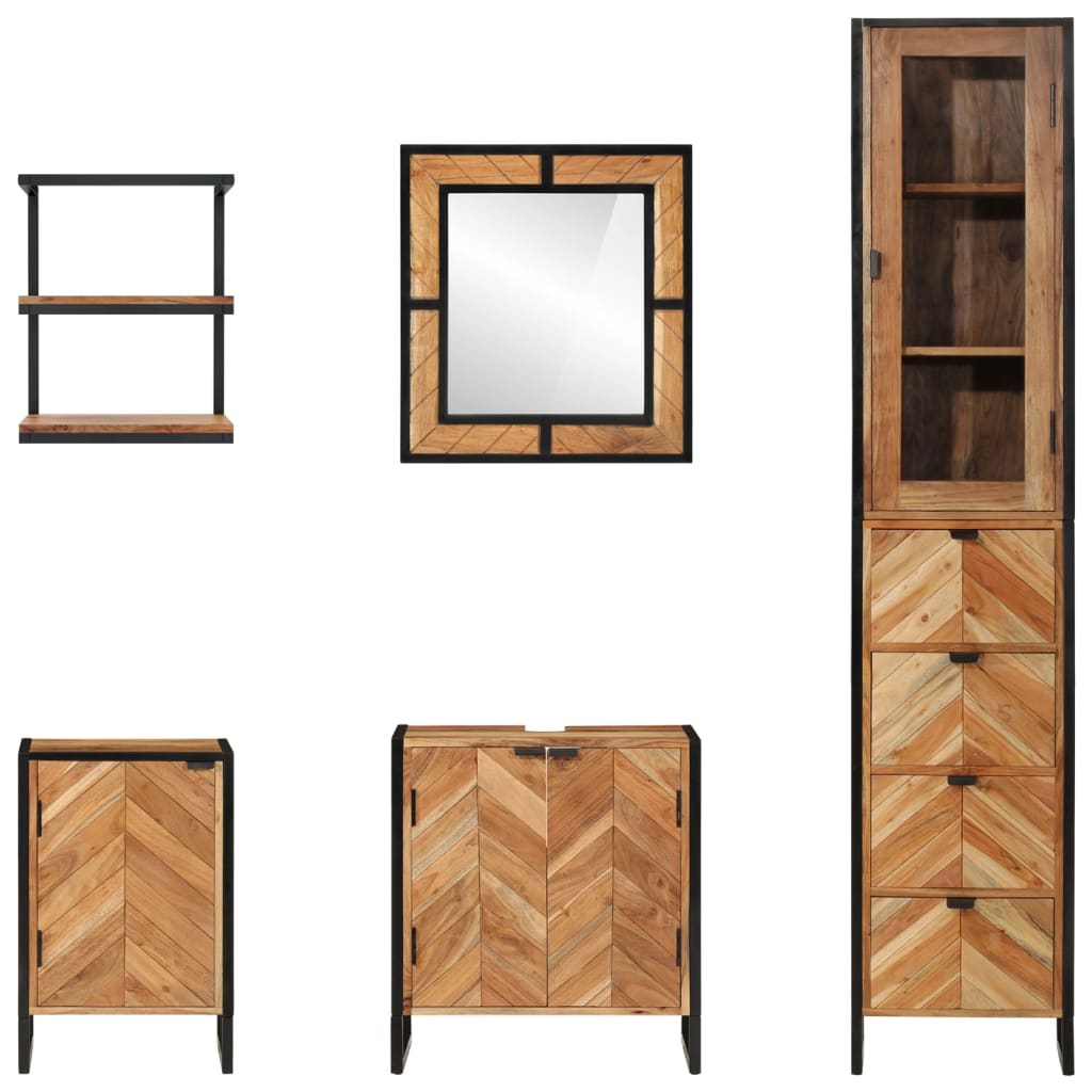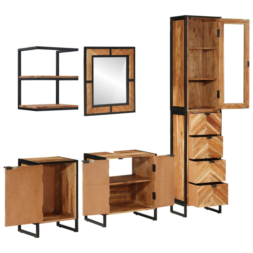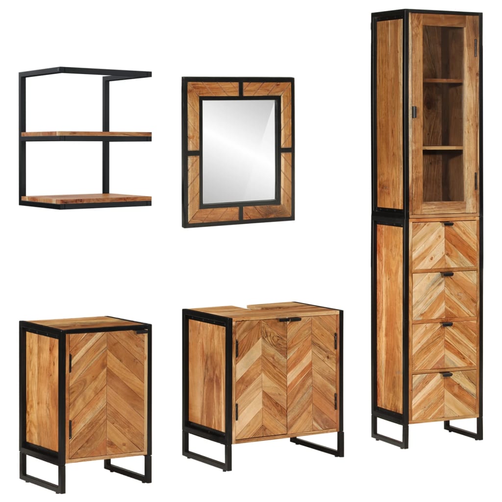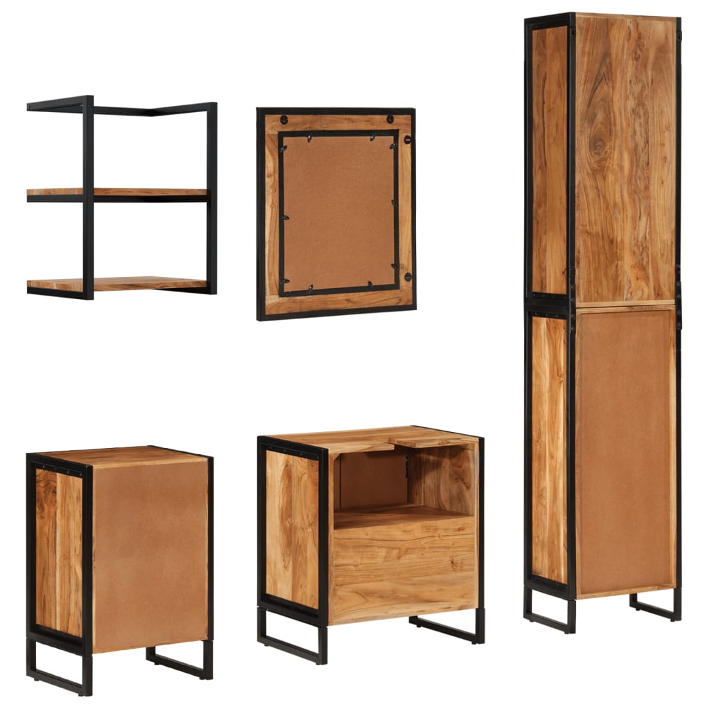 Badrumsmöbelsett 5 delar järn och massivt akaciaträ