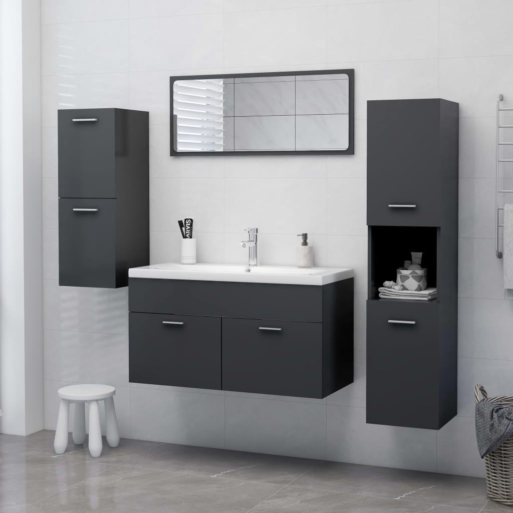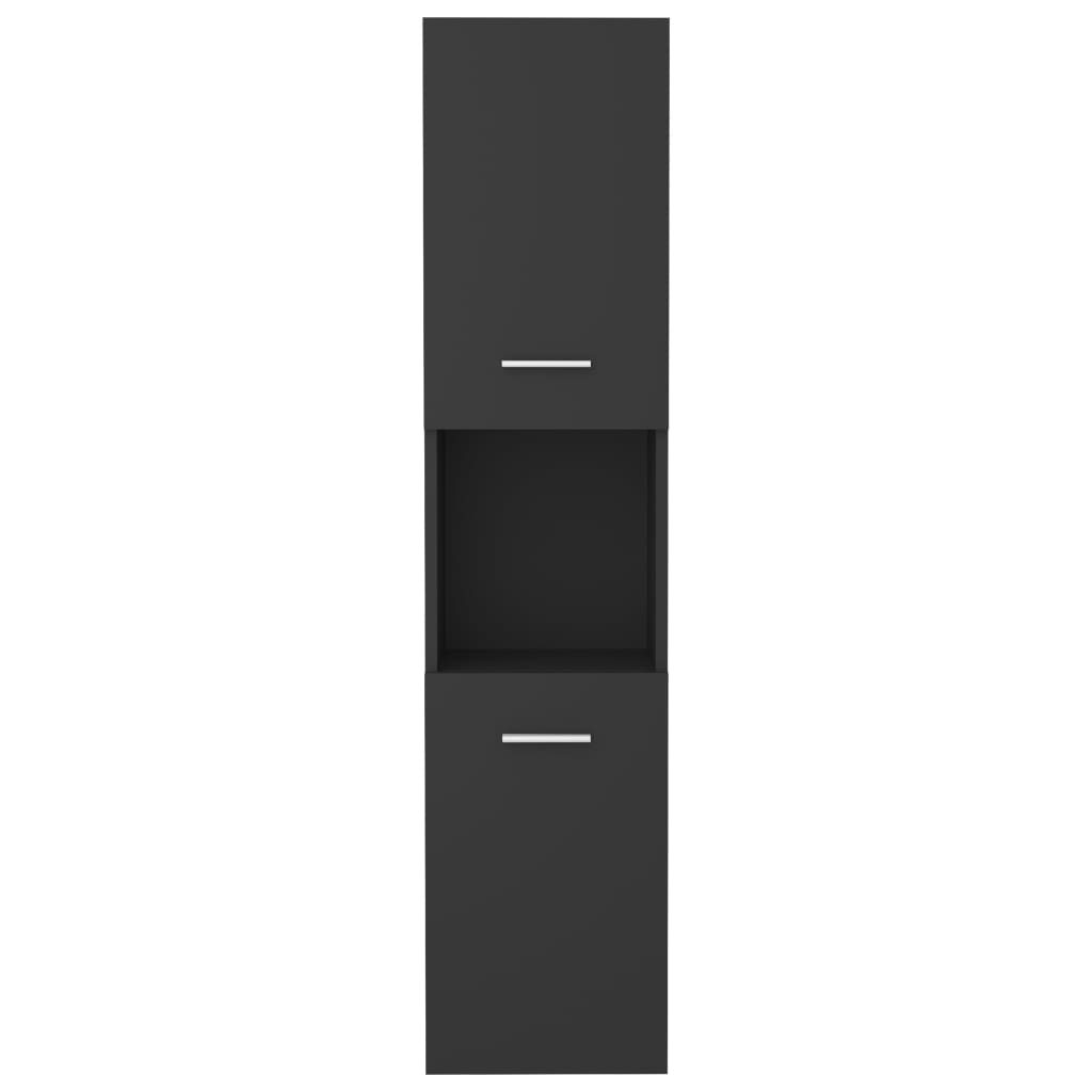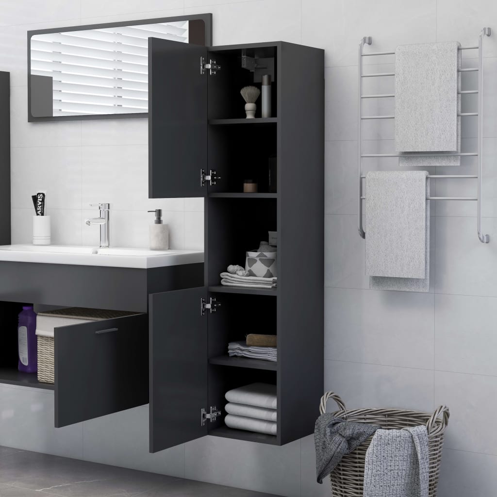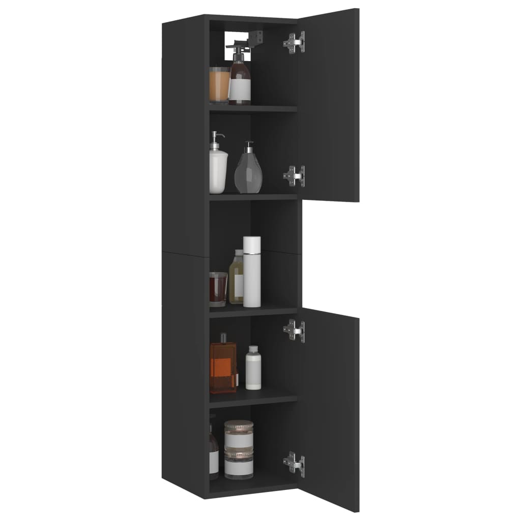 Badrumsskåpet är tillverkat i konstruerat trä, vilket gör det robust och stabilt. Skåpet har totalt 5 utrymmen, med gott om förvaringsutrymme för att förvara föremål i ditt badrum. Dessutom är skåpet lätt att rengöra med en fuktig trasa.
