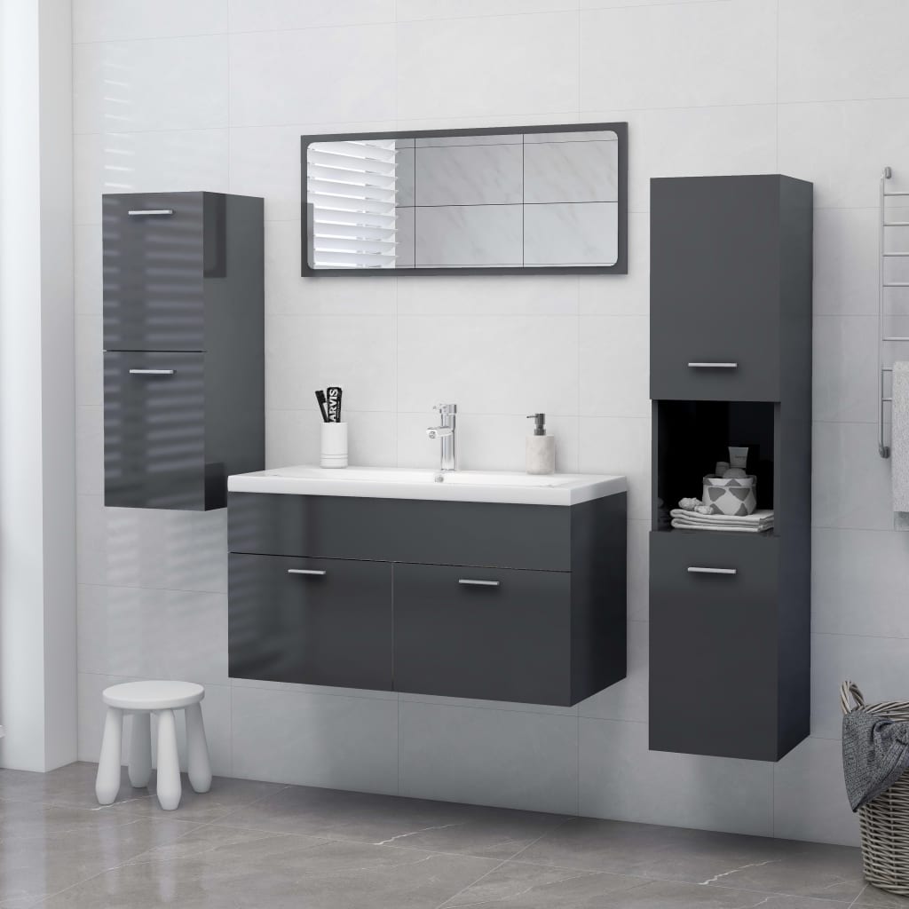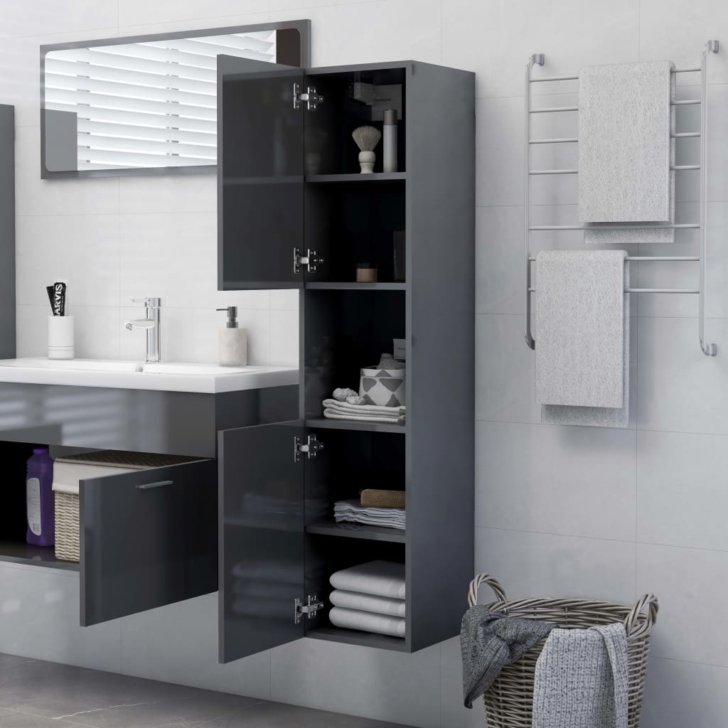 Badrumsskåp Högglans Grå 30x30x130 cm