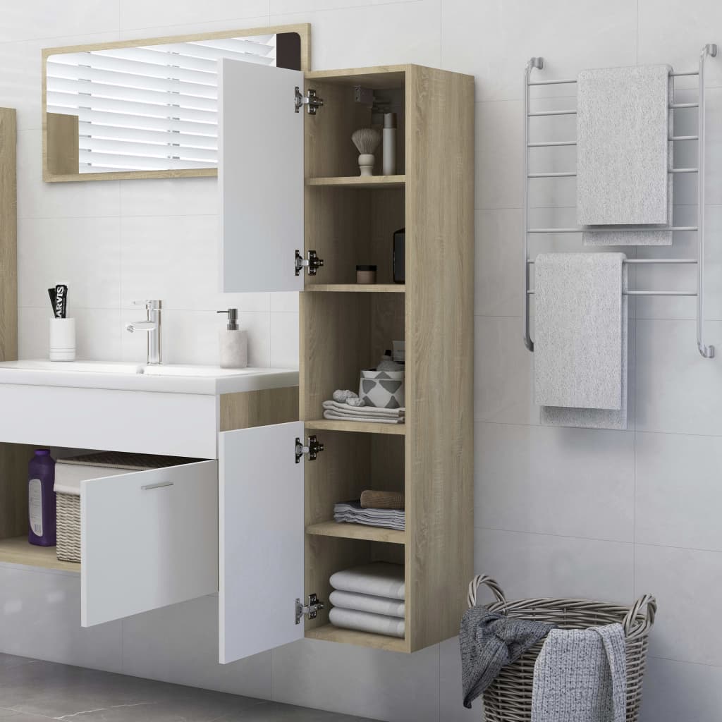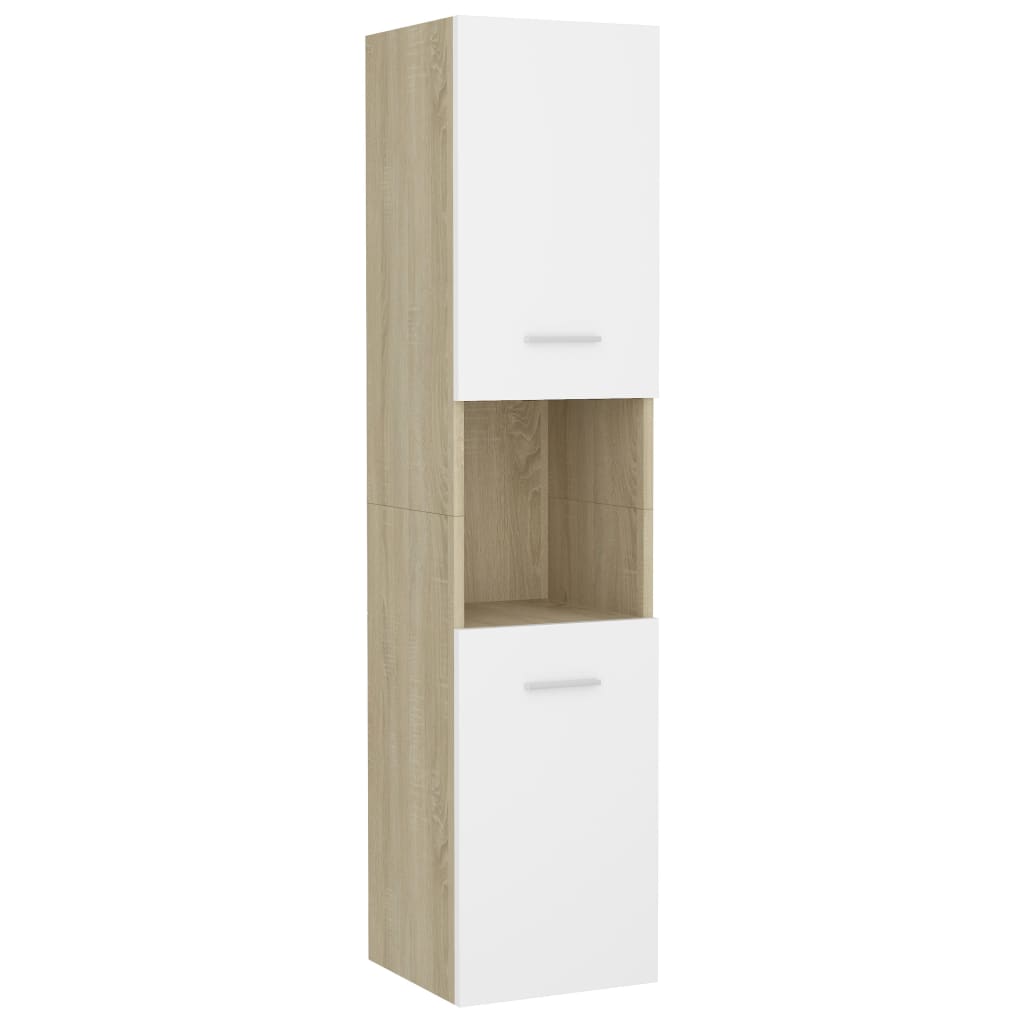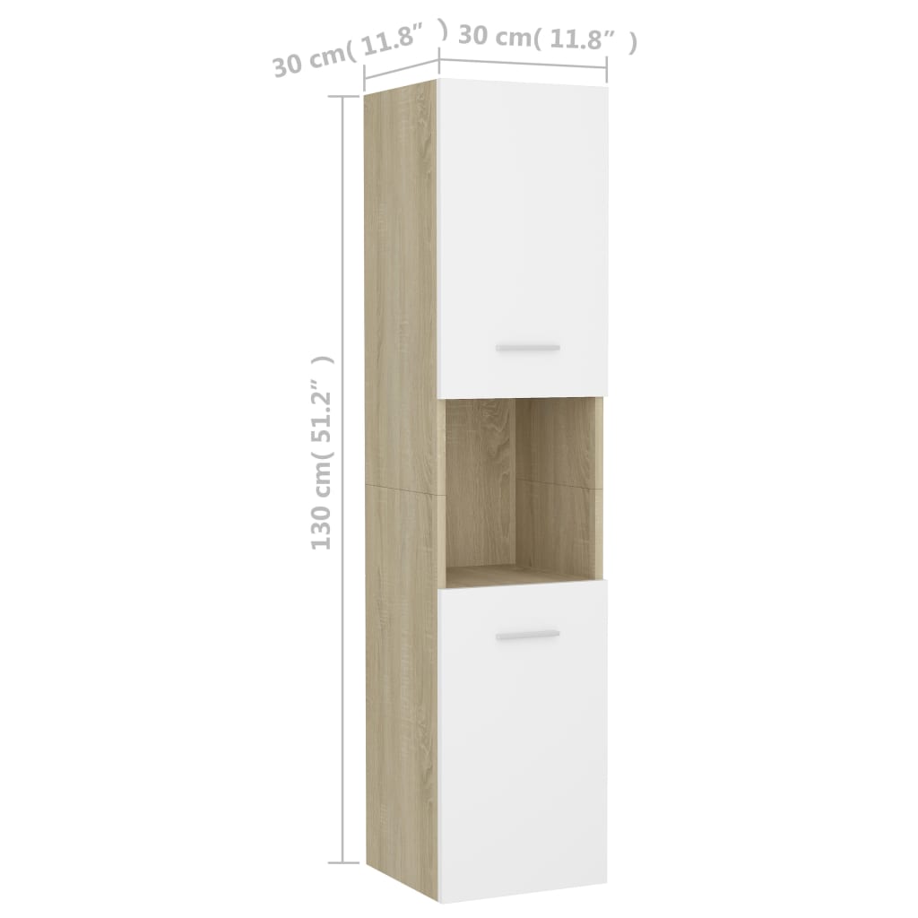 Badrumsskåp Vit och Sonoma Ek 30x30x130 cm