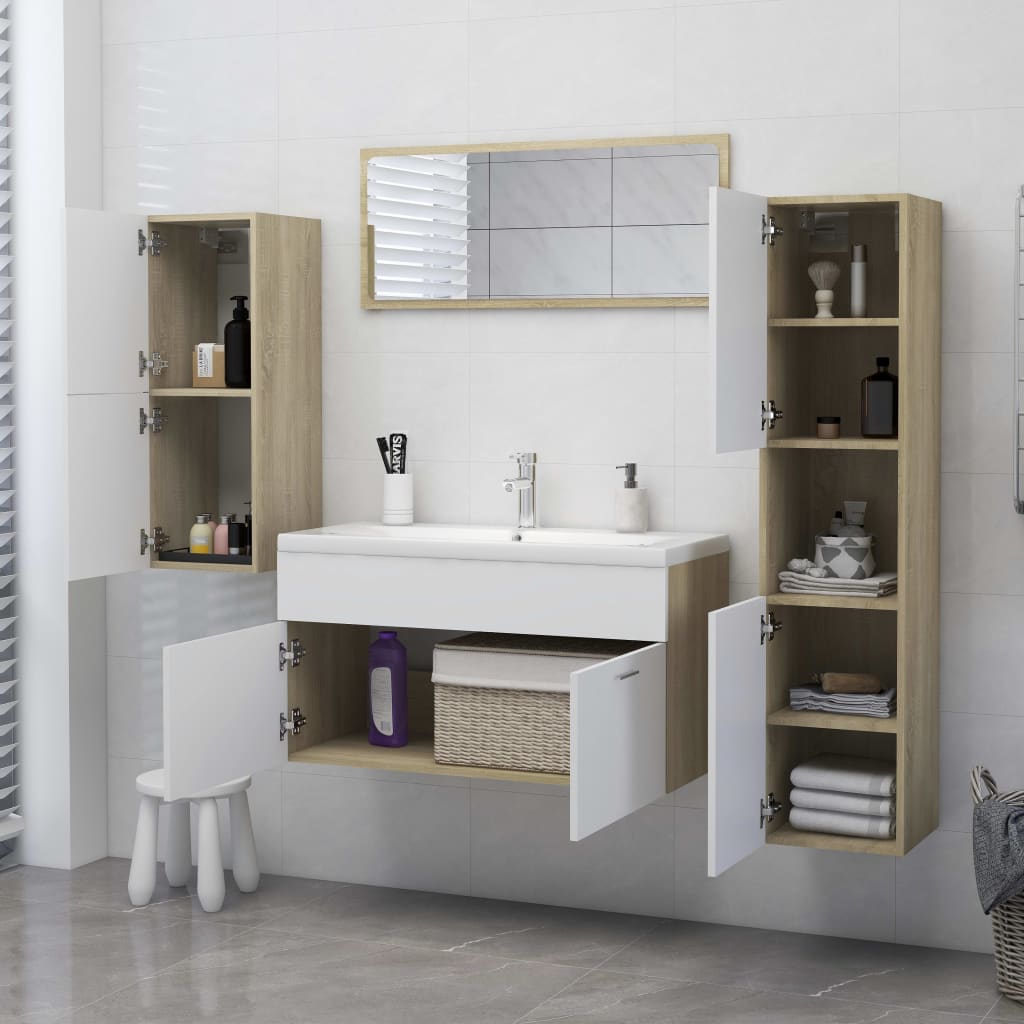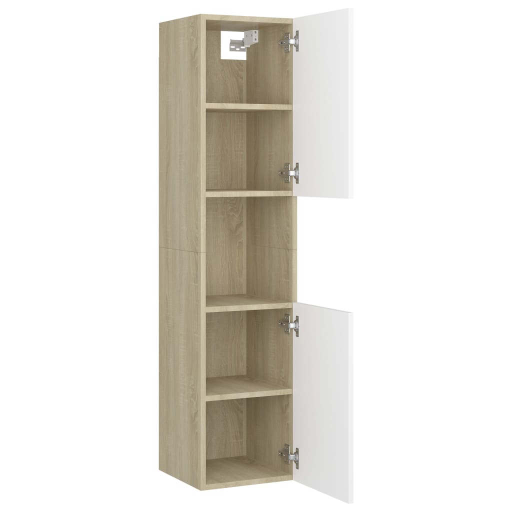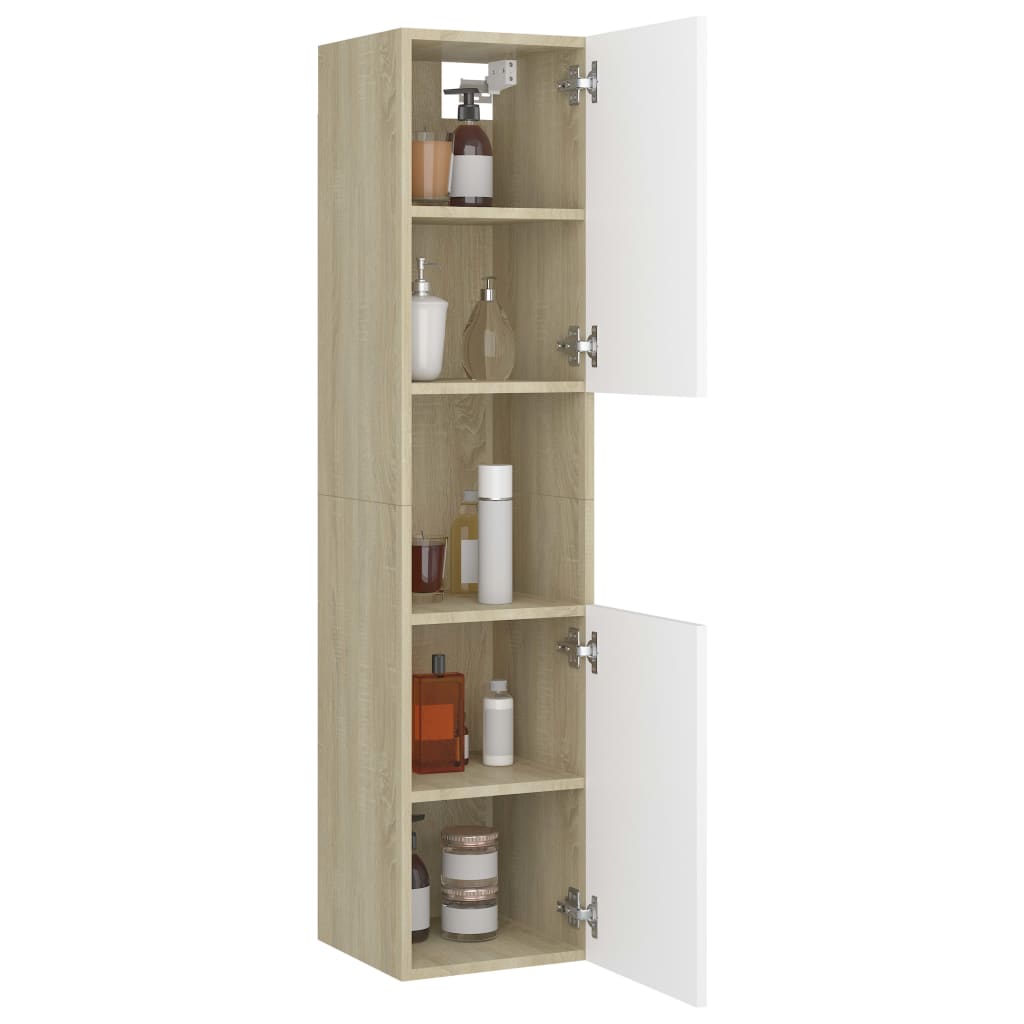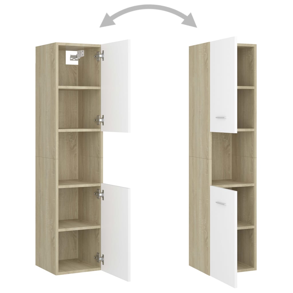 Badrumsskåp Vit och Sonoma Ek 30x30x130 cm