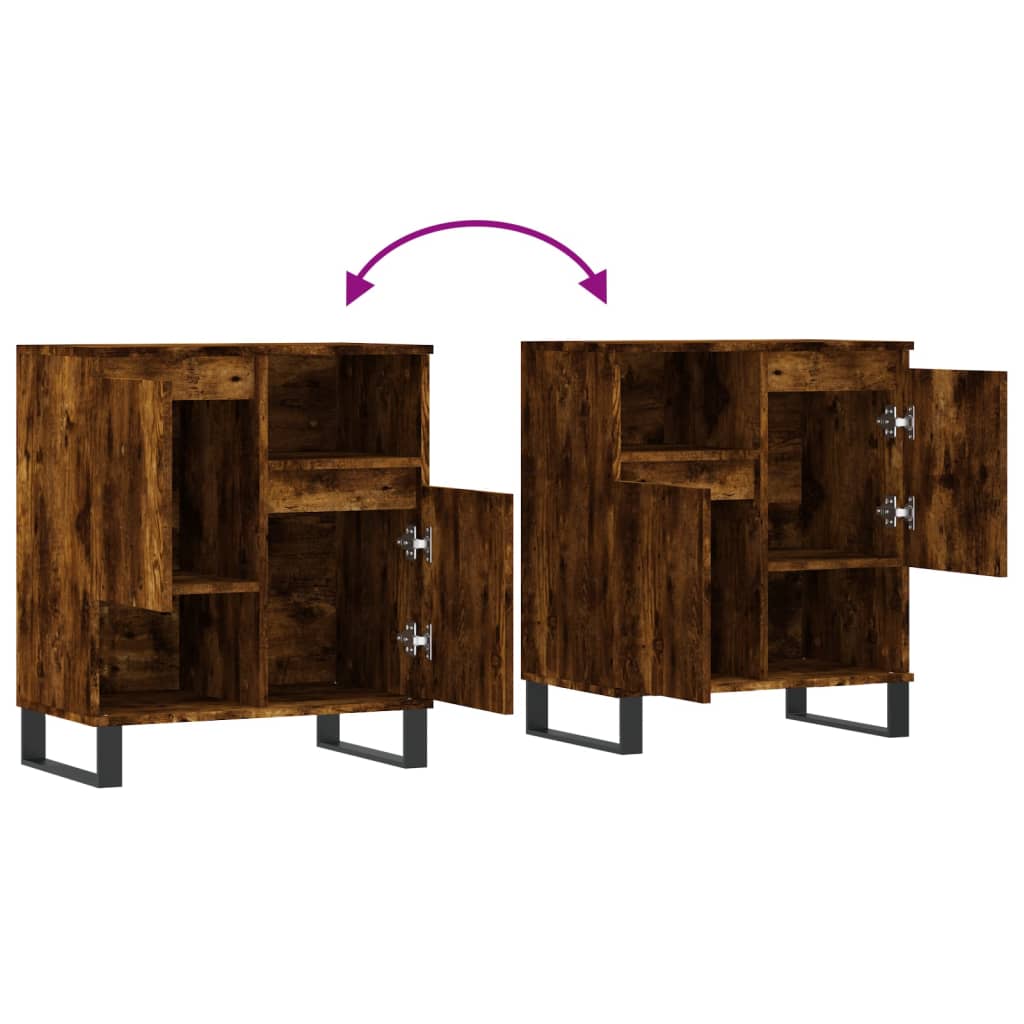 - Hållbart material: Det konstruerade träet är av exceptionell kvalitet med slät yta och är också starkt, stabilt och fuktbeständigt. Skänken är tillverkad av konstruerat trä och är lätt att rengöra med en fuktig trasa.