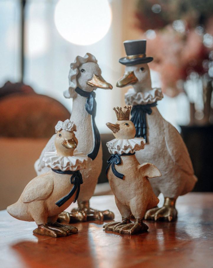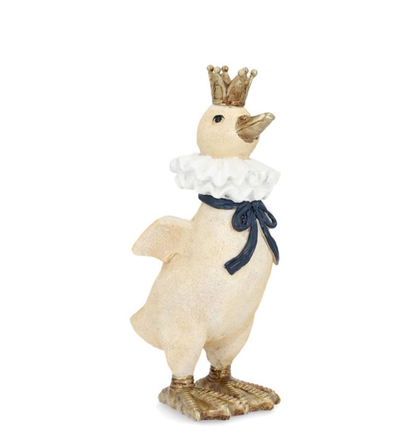 Få en fin dekoration till fönstret eller soffbordet med en ankunge med krage runt halsen och krona på huvudet. Tillverkad i poly.