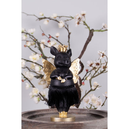 Dekoration Djur Gris 18 Cm Svart Guld Färg Polyresin