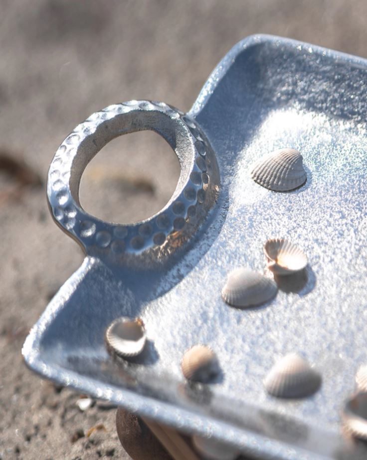 Rektangulär bricka med två handtag. Vacker som den är eller som fat att ställa ljus, växter och bordsdekorationer på. Tillverkad i metall.