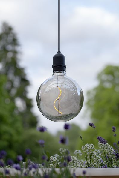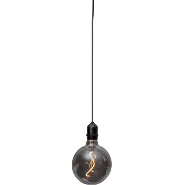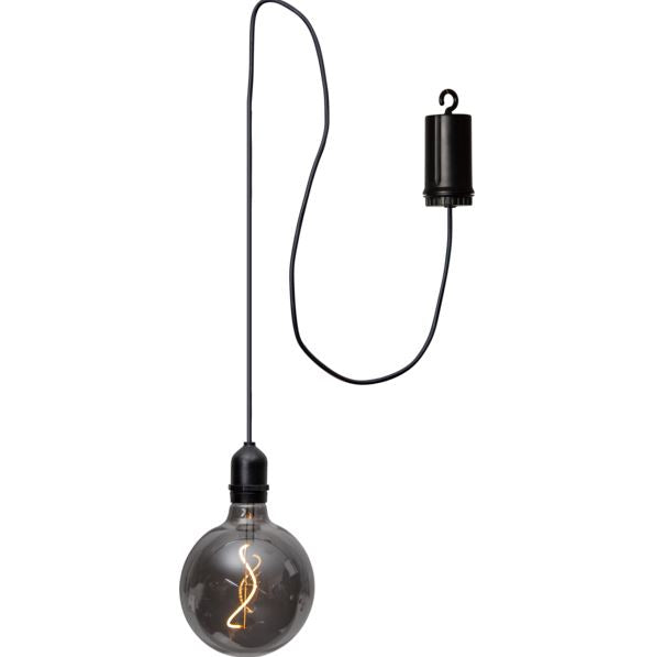 Elegant glasdekoration för både inom- och utomhusbruk. Rökfärgat glas med filament LED. Batteridriven med timerfunktion.