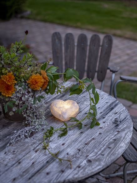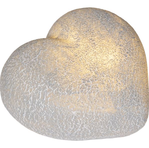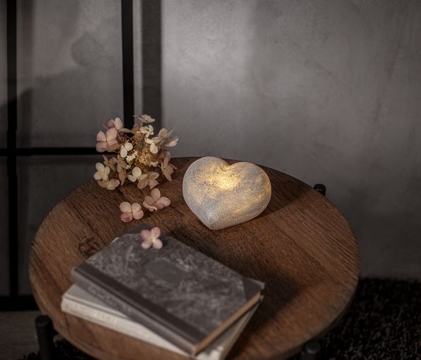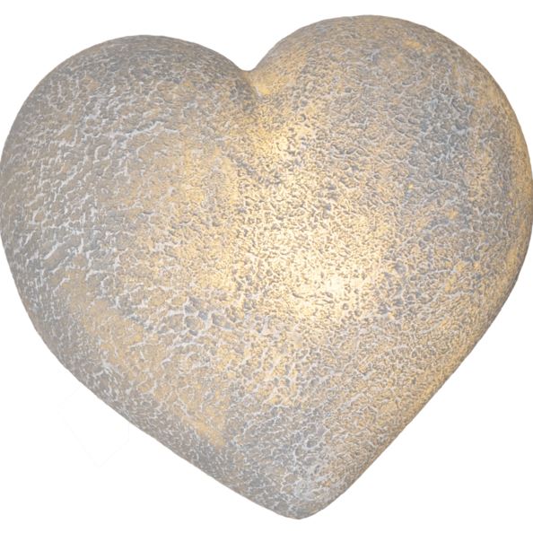 Fint hjärta gjord av polystone som ser ut som sten. En vacker dekoration som passar lika bra inne som ute. Lyser med varmvitt sken och har inbyggd timer. Drivs av 3xAAA batterier, dessa ingår inte.