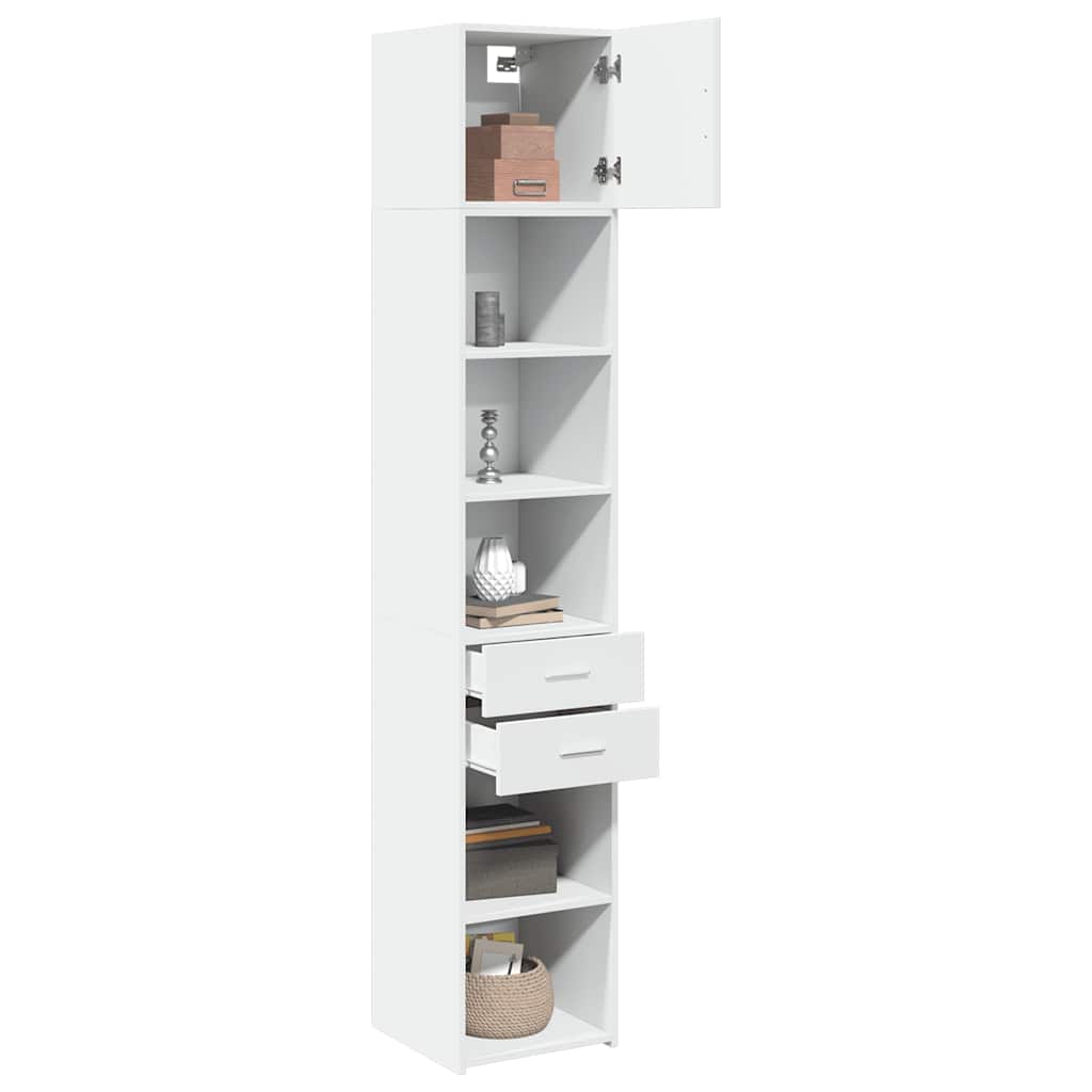 - Platsbesparande: Den här höga förvaringsenheten utnyttjar effektivt vertikalt utrymme för att maximera förvaringskapaciteten, vilket gör den till en perfekt möbel för små eller begränsade utrymmen.