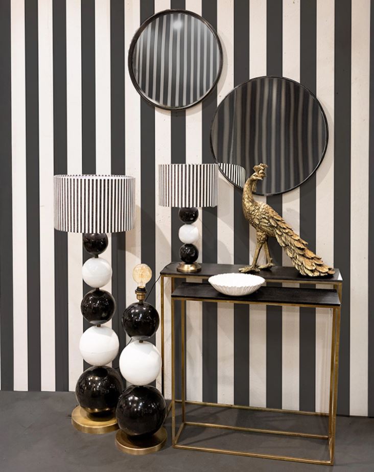 Golvlampa med fem klot i svart och vitt, tillverkad i metall. Ger en fin och ombonad känsla i hemmet.