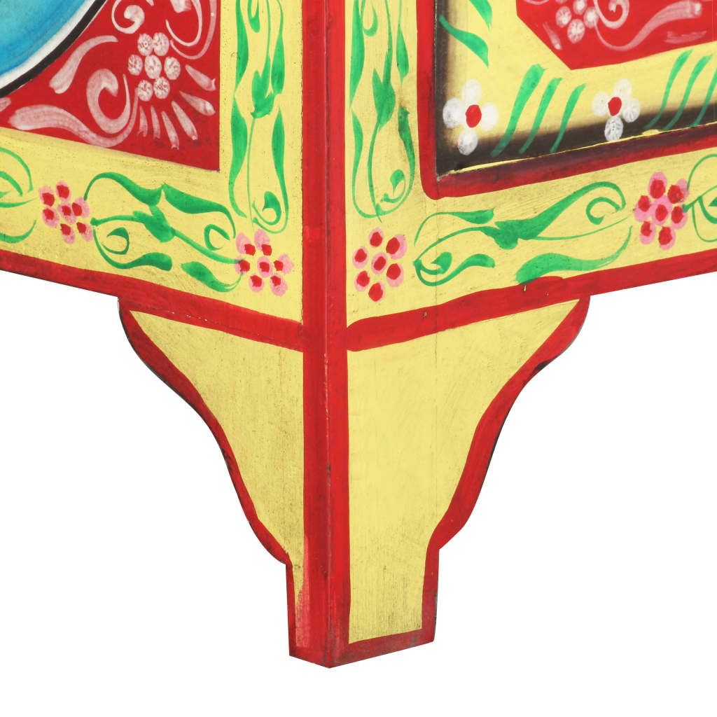 Detta vackra sängbord i trä, dekorerat med fina, handmålade dekorationer, blir en iögonfallande detalj i ditt sovrum med sin färgglada design.