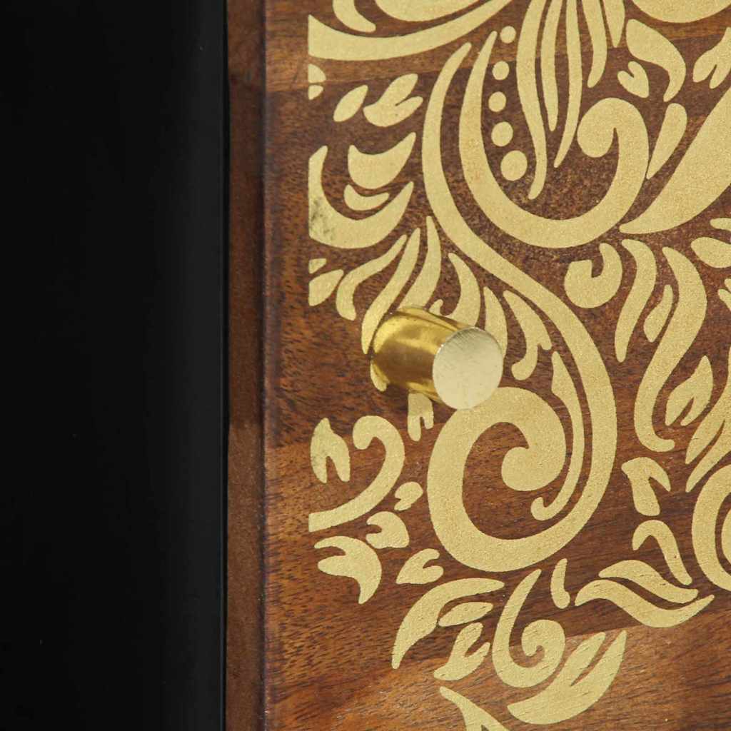 - Funktionell design: Med en dörr med gångjärn och smala ben i massivt mangoträ, är designen både stark och snygg. Varje detalj förbättrar bordets moderna känsla och användbarhet.