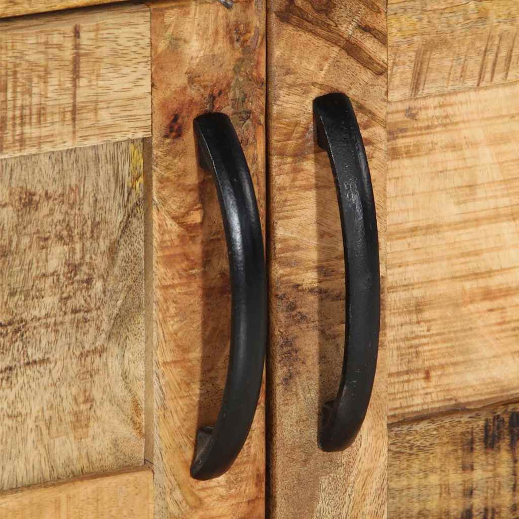 - Praktisk Förvaring: Det har en smart låda av mangoträ, perfekt för att förvara grejer som fjärrkontroller och underlägg. Denna låda passar snyggt in utan att störa bordets stil.