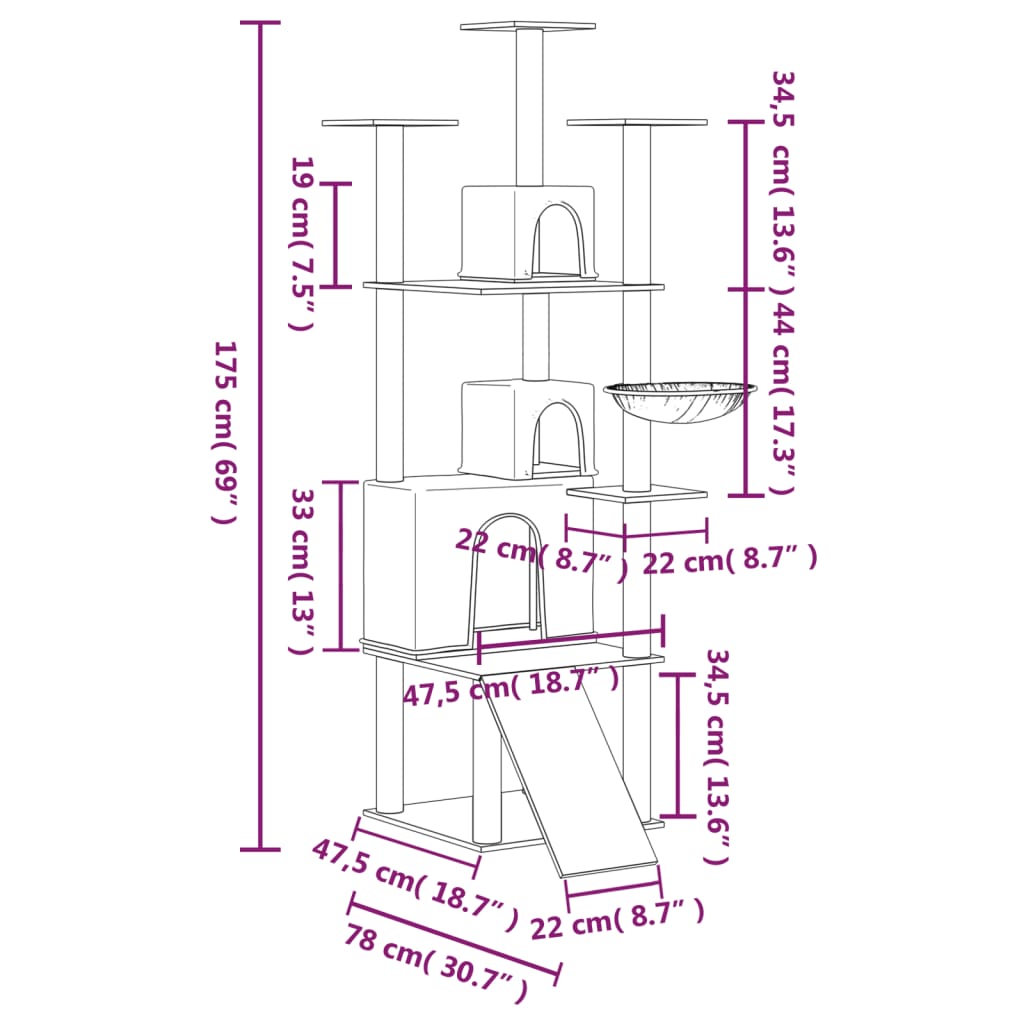 Kattmöbel Klösträd med sisalpelare ljusgrå 175 cm