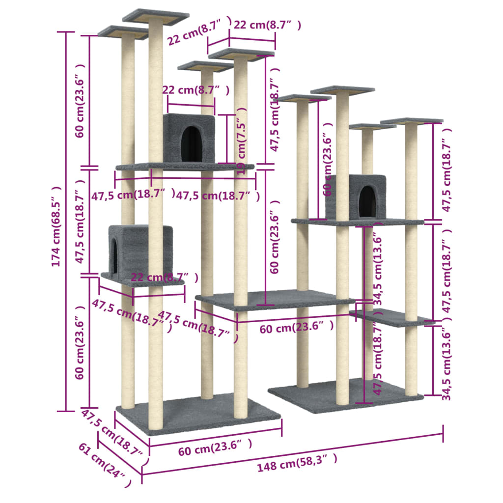 Kattmöbel Klösträd med sisalpelare mörkgrå 174 cm