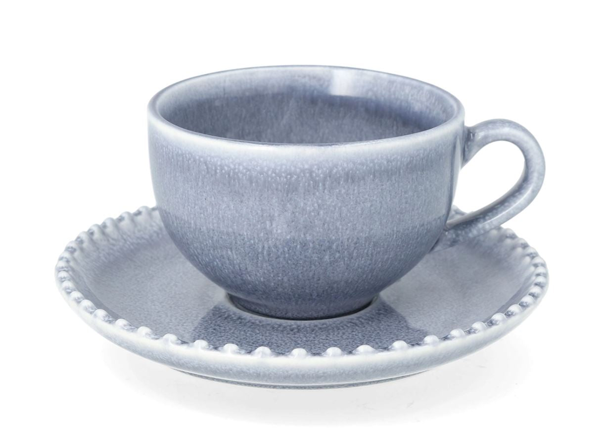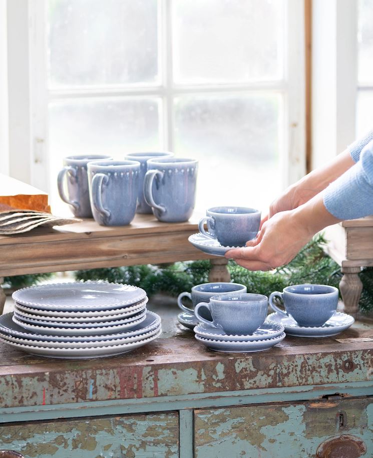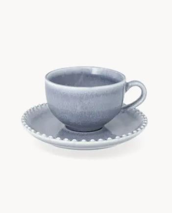 Njut av en kopp kaffe med detta set med kopp och fat. Tillverkad i stengods. Finns i flera färger. Finns också som skålar och tallrikar.