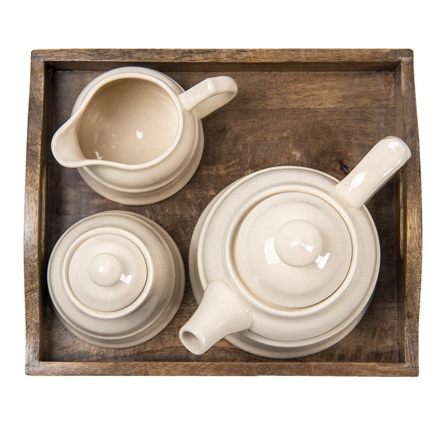 Köksservis Tea Set 27x22x16 cm Beige Brown Wood Tea pot