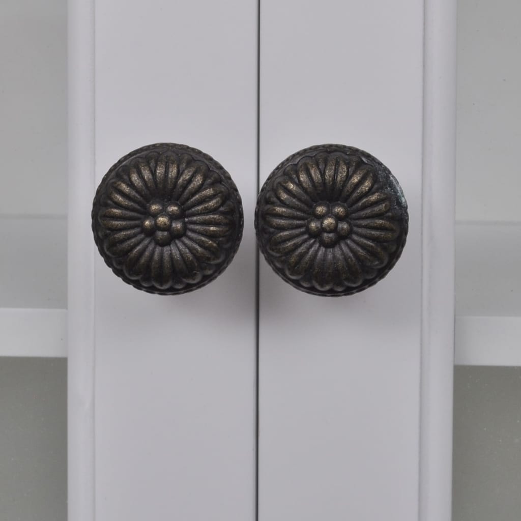 Detta eleganta väggskåp i trä med antik har gott om förvaringsplats och hjälper dig att hålla prylar organiserade.