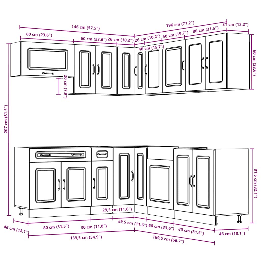 Denna 11-delars uppsättning köksskåp med elegant design, optimerar ditt köksutrymme och har om förvaringsutrymme för dina personliga tillhörigheter!