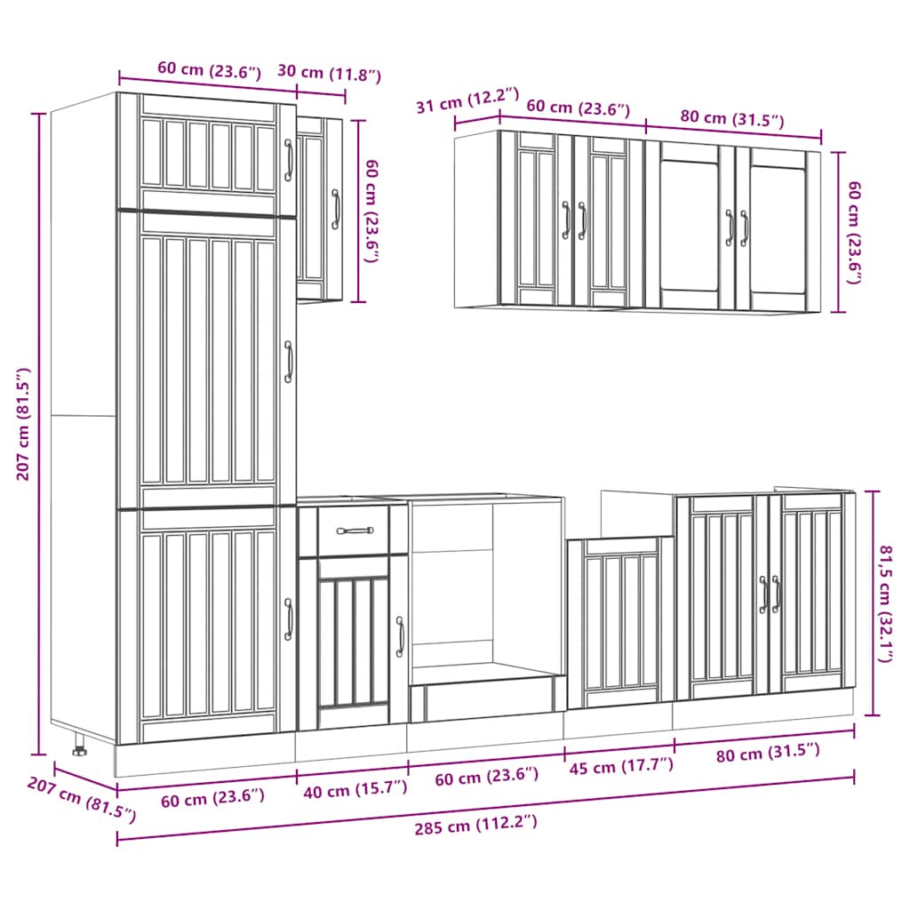 Köksskåpsset Lucca 8 delar betonggrå konstruerat trä