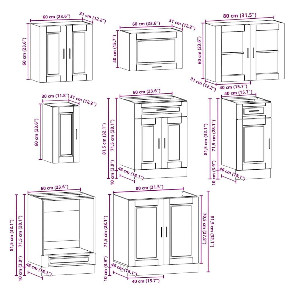 - 1 x Väggskåp för kök: 60 x 31 x 60 cm (B x D x H)