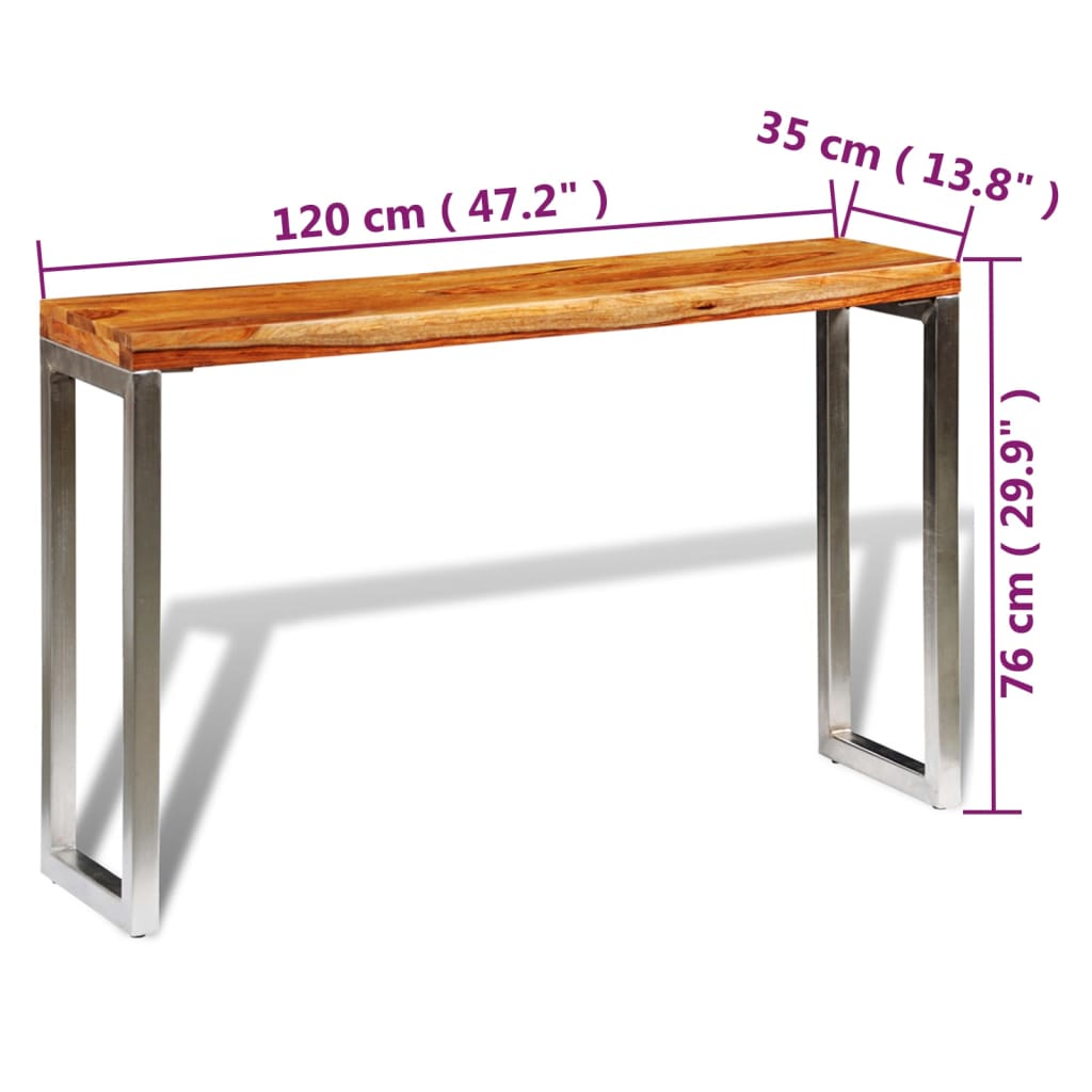 Detta soffbord i massivt trä är både snyggt och praktiskt. Den eleganta designen gör detta skåp till en huvudattraktion i hemmet. Konsolbordet har en stabil och tålig bordskiva, vilket är perfekt att ställa dekorationer på, såsom fruktskålar eller ljuslyktor.