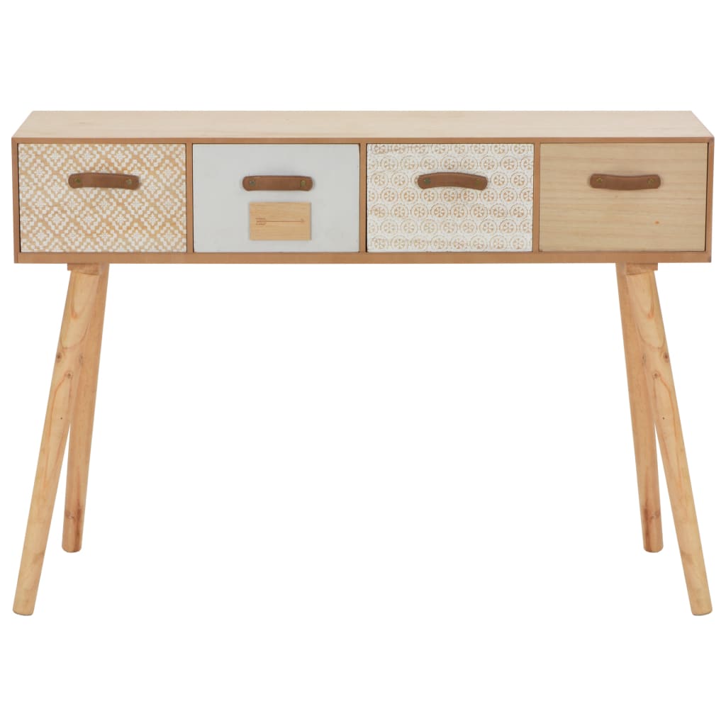 Ge heminredning en rustik charm med vårt stiliga konsolbord! Detta vackra konsolbord är utrustat med 4 lådor med olika designer och färger som ger skåpet ett vackert utseende och gott om förvaringsutrymme. Det blir ett såväl praktiskt som dekorativt tillskott i hallen, vardagsrummet eller salongen.