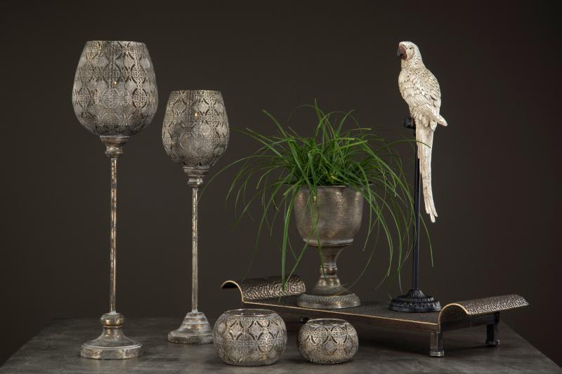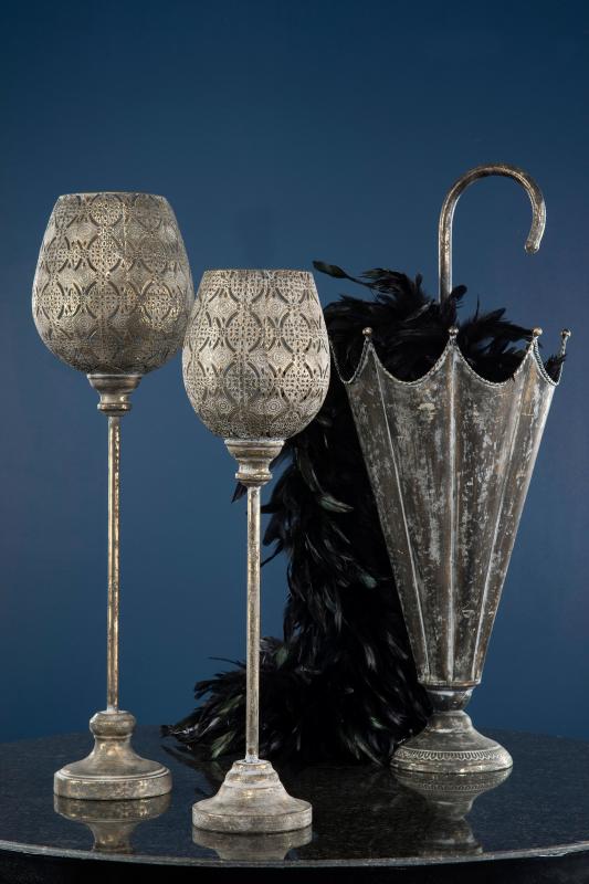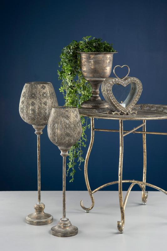Hög och detaljrik ljuslykta på fot med fint hålmönster som ger ett vackert och mysigt sken