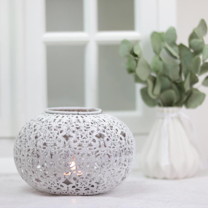 Ett vackert hålmönster som ger ett fint och mysigt sken.