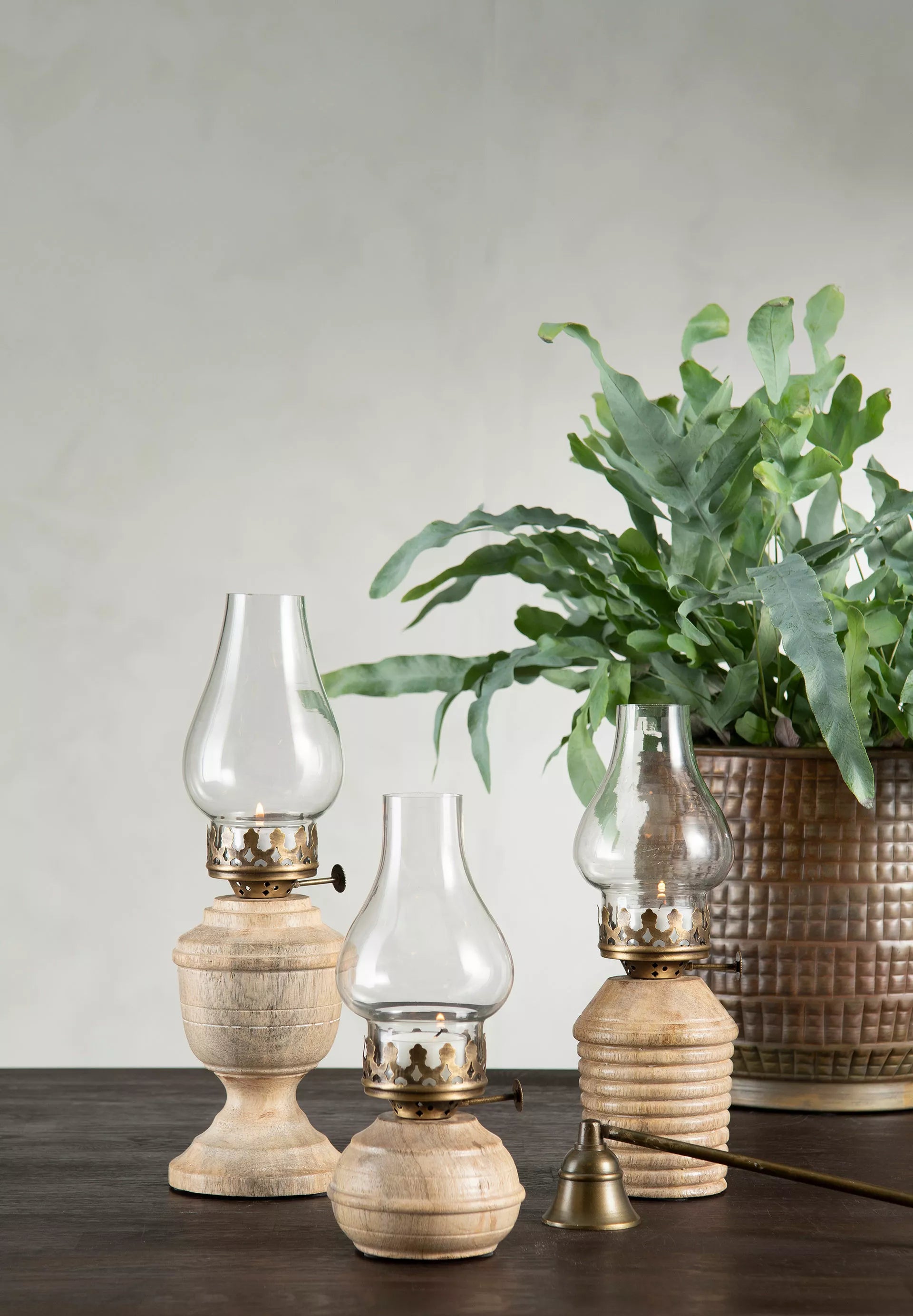 Ljuslykta Lampa till värmeljus Lea Trä Antik Antik Mässing