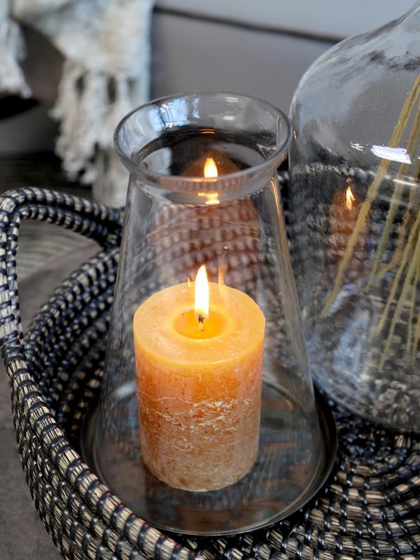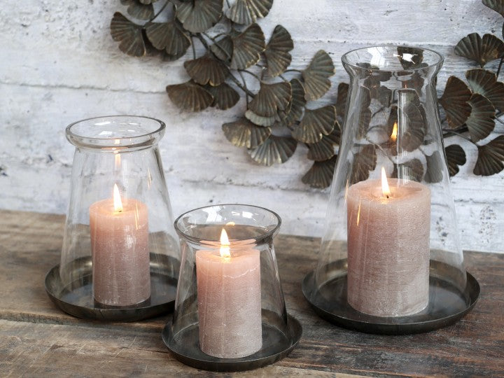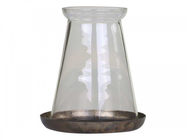 Ljuslykta m. glas H14/Ø14 cm antique mässing 1 st