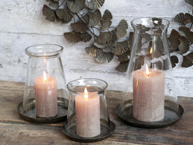 Ljuslykta m. glas H22/Ø15 cm antique mässing 1 st