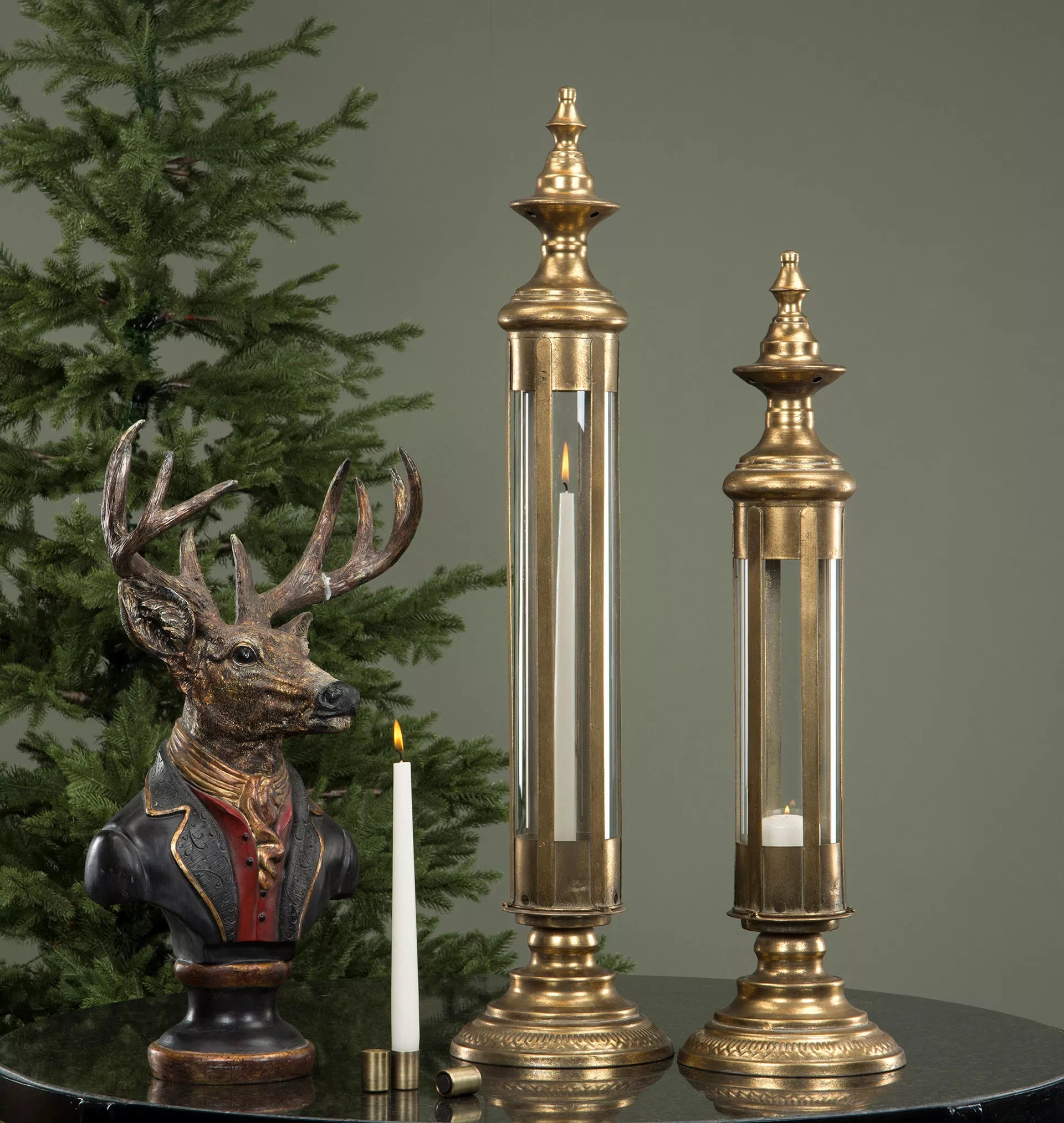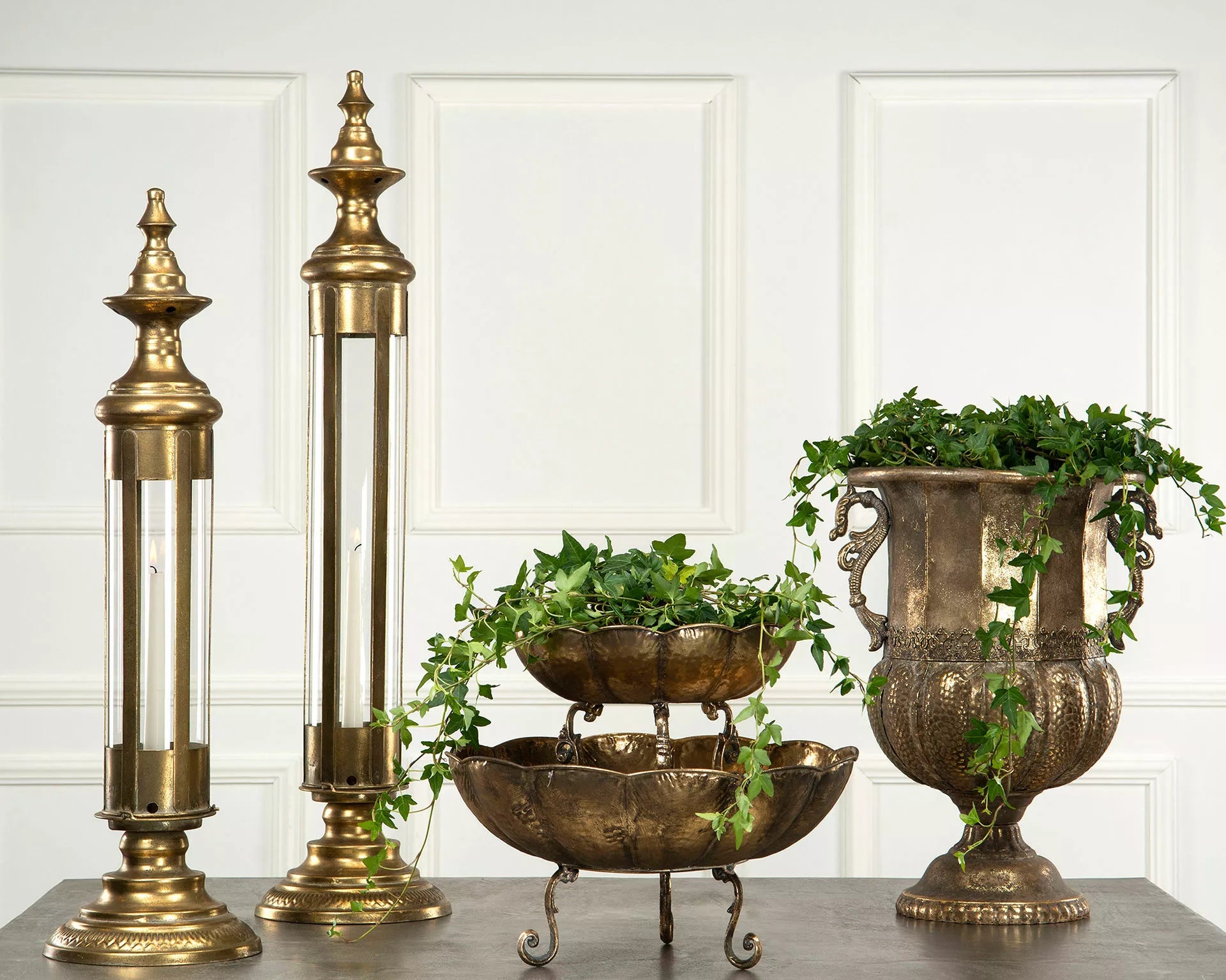 Hög och vacker lykta i metall till kronljus/blockljus