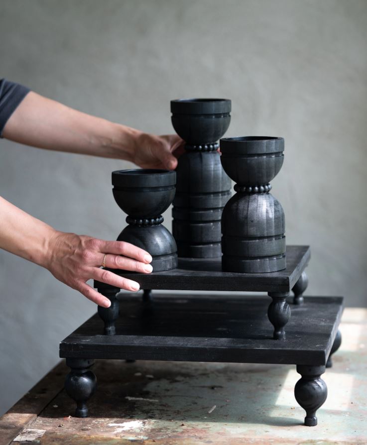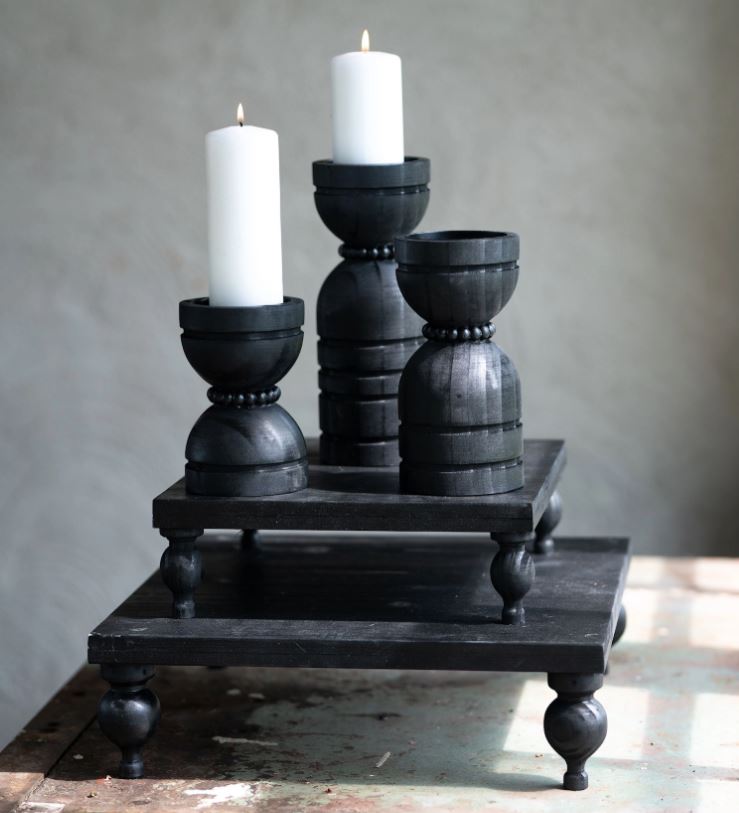 Ljusstake trä 3-pack 15/20/25 cm svart