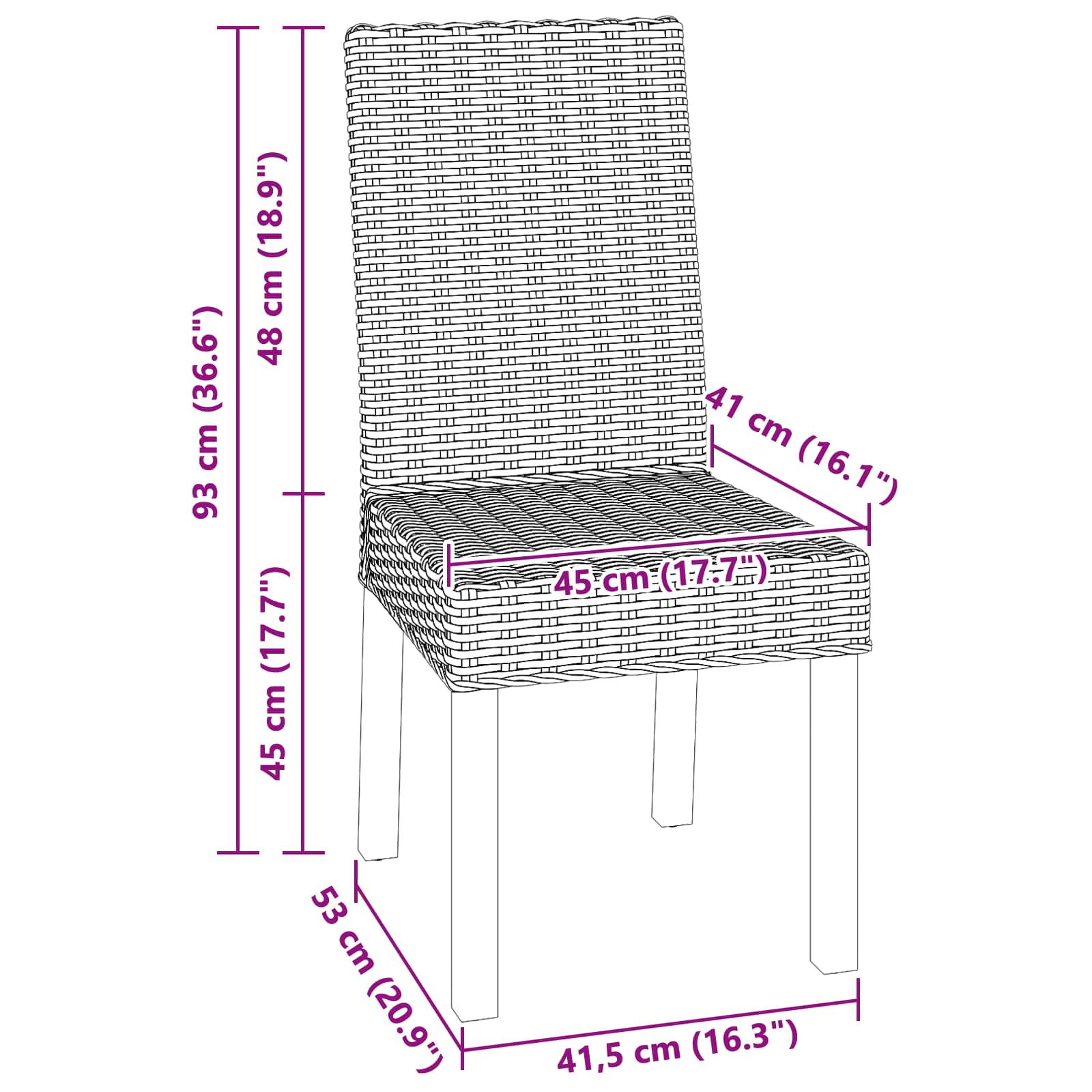 Denna matstolsuppsättning blandar modern stil med praktisk funktionalitet, och lyfter direkt varje vardagsrum eller kök. Med raka linjer och en minimalistisk design ger dessa stolar en charmig och sofistikerad känsla. Den vävda rottingen ger en naturlig känsla, medan mahognyramarna ger bra stabilitet. Perfekta för både mysiga middagar och livliga sammankomster, inbjuder denna stolsdesign till avslappning och socialt umgänge.