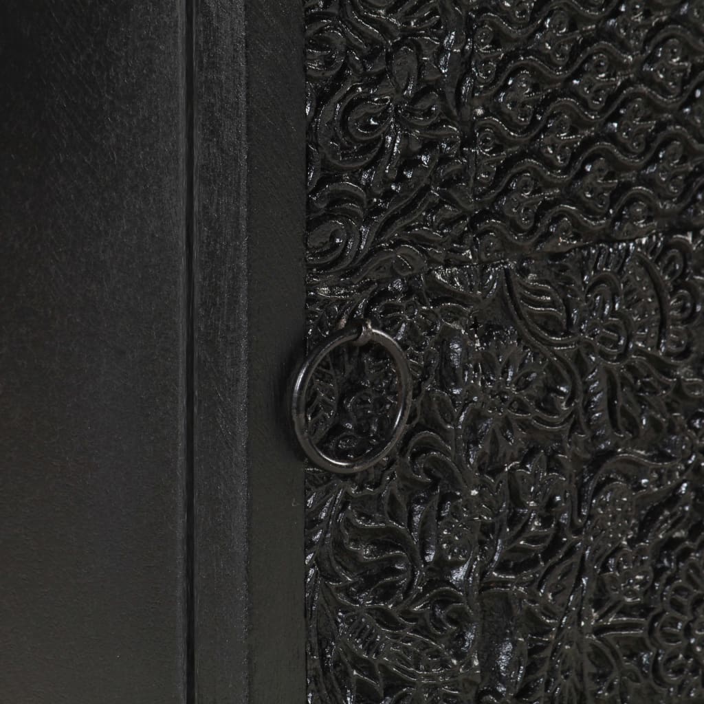 - Material: Massivt akaciaträ och mangoträ med en svart färg, pulverlackerat stål