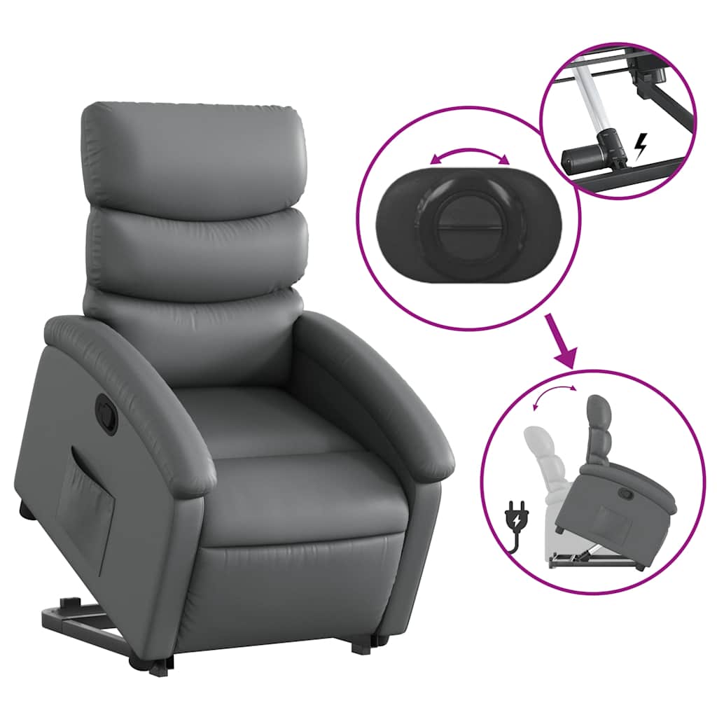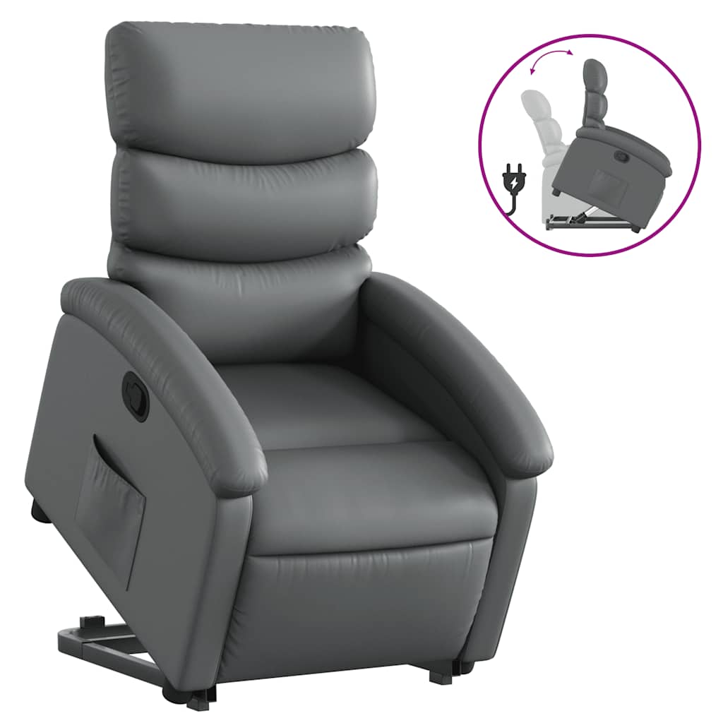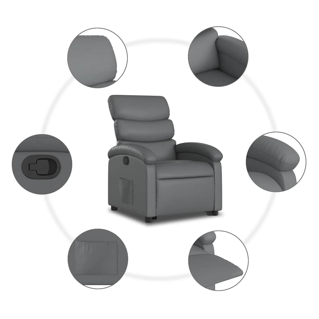 Fåtölj Grå Reclinerfåtölj med uppresningshjälp konstläder