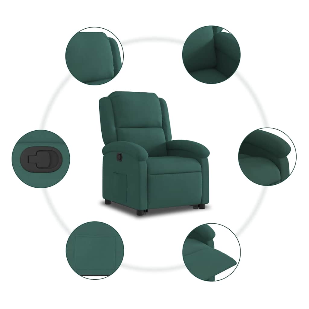 Fåtölj Grön Mörkgrön Reclinerfåtölj med uppresningshjälp sammet