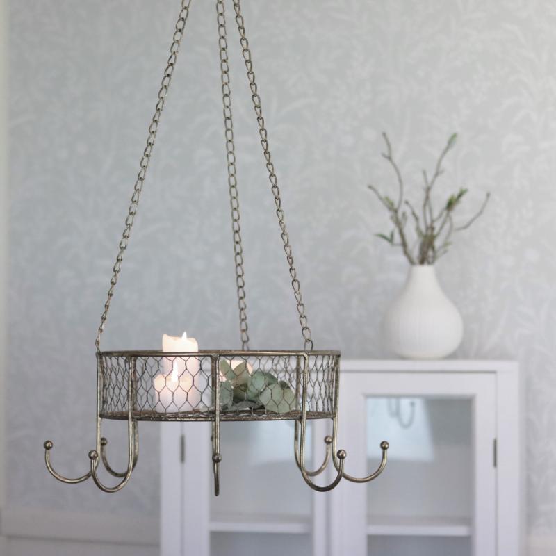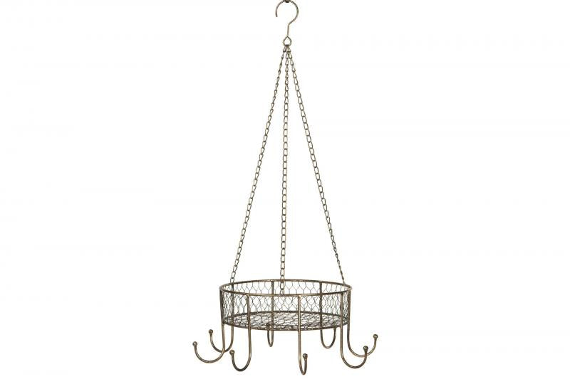 Vacker hängande korg med nät och 8 st krokar i en vacker mi cm x av lantlig och industriell stil.