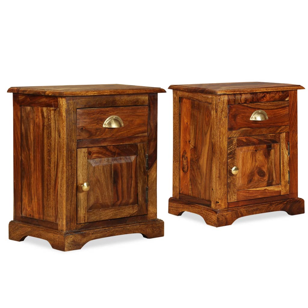 Sängbord 2 st 40x30x50 cm massivt shesamträ